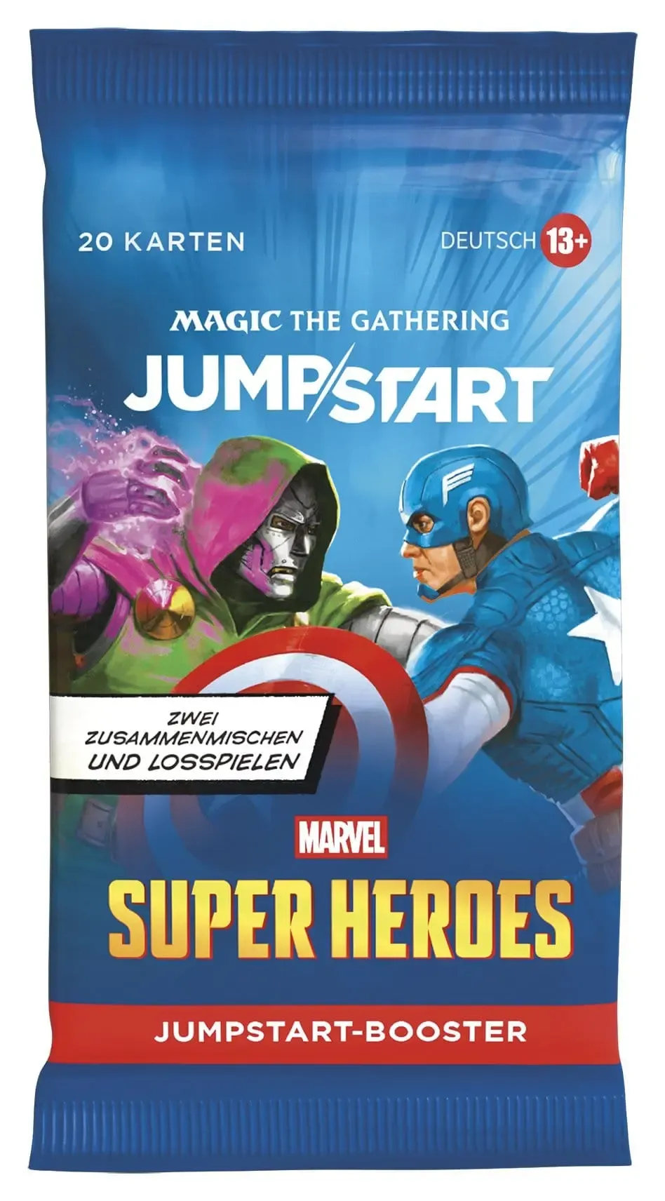Das Spiel der chaotischen Kombinationen wird mit dem Marvel-Universum vermischt! Nimm einfach zwei Packs, mische sie zusammen und du bist bereit für den Kampf. Du findest Marvel-Themen-Packs, die auf Leistung, Spaß und Vielseitigkeit ausgelegt sind. Außerdem enthält jedes Pack alle Länder, die du brauchst, sodass einem Shuffle-Two-Showdown wirklich nichts im Wege steht! Jeder Jumpstart-Booster enthält 20 Magic-Karten. Wenn du deine Mash-ups maximieren möchtest, sind die Magic: The Gathering Marvel Super Heroes Jumpstart-Packs mit allen anderen Jumpstart-Packs kompatibel.