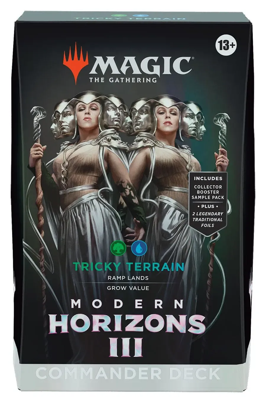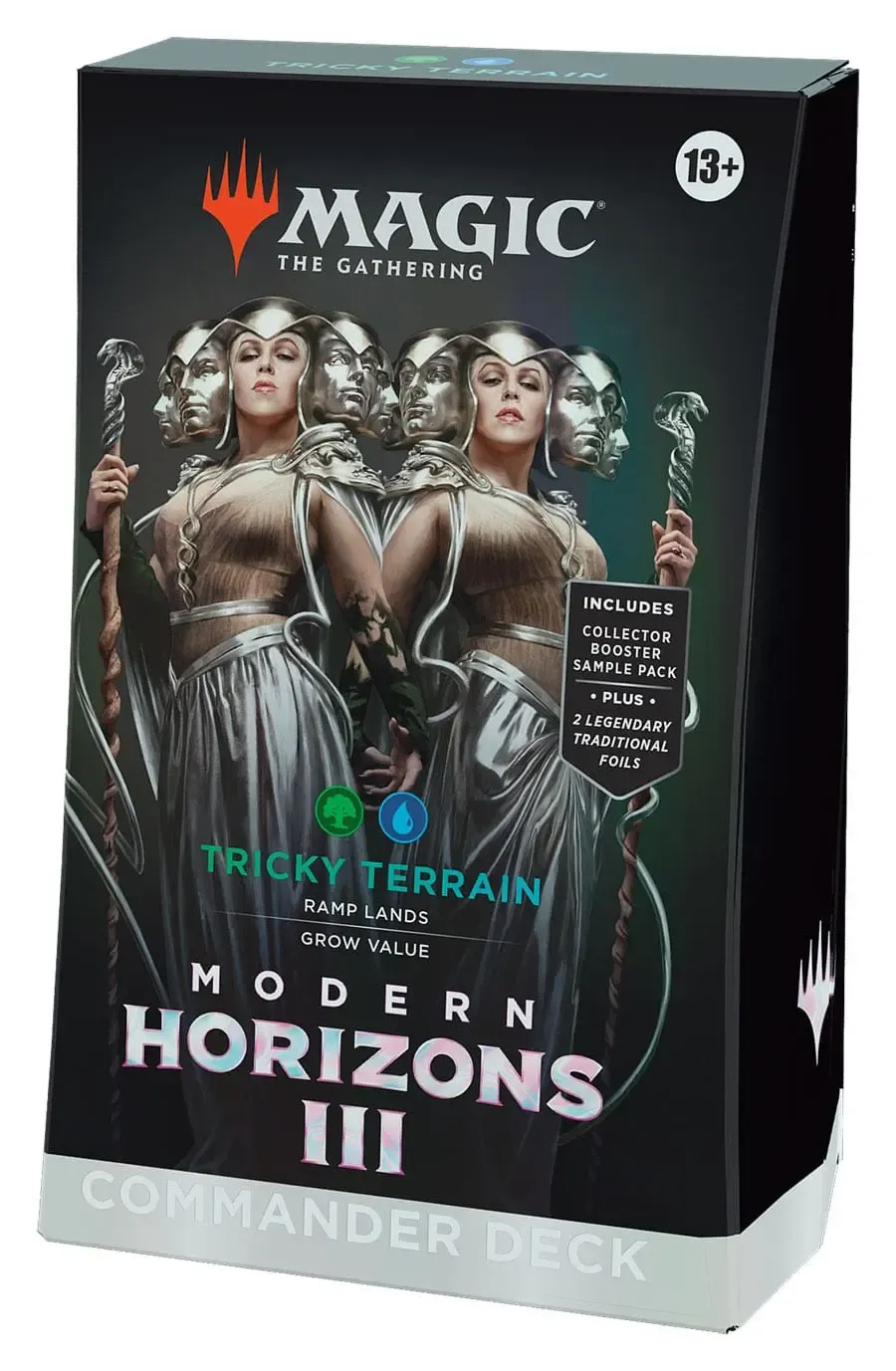 In Commander kommen vier Spieler zusammen, um ihre Stärke und Strategie unter Beweis zu stellen, wobei ein Spieler am Ende die Nase vorn hat. Jedes spielfertige Modern Horizons 3 Commander-Deck mit 100 Karten macht es Commander-Fans in Ihrem Store leicht, sich ein Deck zu schnappen und sofort zu spielen.