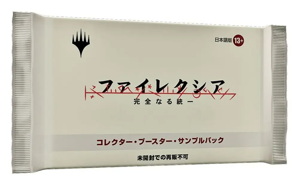 Ein Phyrexia: Alles wird eins Sammler-Booster-Display enthält 12 Phyrexia: Alles wird eins Sammler-Booster. Jeder Sammler-Booster enthält 15 Magic: The Gathering Karten und 1 doppelseitige Foil-Spielsteinkarte, darunter eine Kombination aus 5-6 Karten der Seltenheit selten oder höher, 2-5 nicht ganz so häufigen Karten, 4-7 häufigen Karten und 1 Länderkarte. Jeder Booster enthält insgesamt 10 traditionelle Foilkarten. Sagenhaft seltener Foil-Planeswalker ohne Rand in 3 % der Booster.