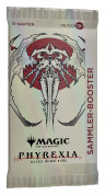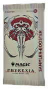 Ein Phyrexia: Alles wird eins Sammler-Booster-Display enthält 12 Phyrexia: Alles wird eins Sammler-Booster. Jeder Sammler-Booster enthält 15 Magic: The Gathering Karten und 1 doppelseitige Foil-Spielsteinkarte, darunter eine Kombination aus 5-6 Karten der Seltenheit selten oder höher, 2-5 nicht ganz so häufigen Karten, 4-7 häufigen Karten und 1 Länderkarte. Jeder Booster enthält insgesamt 10 traditionelle Foilkarten. Sagenhaft seltener Foil-Planeswalker ohne Rand in 3 % der Booster.