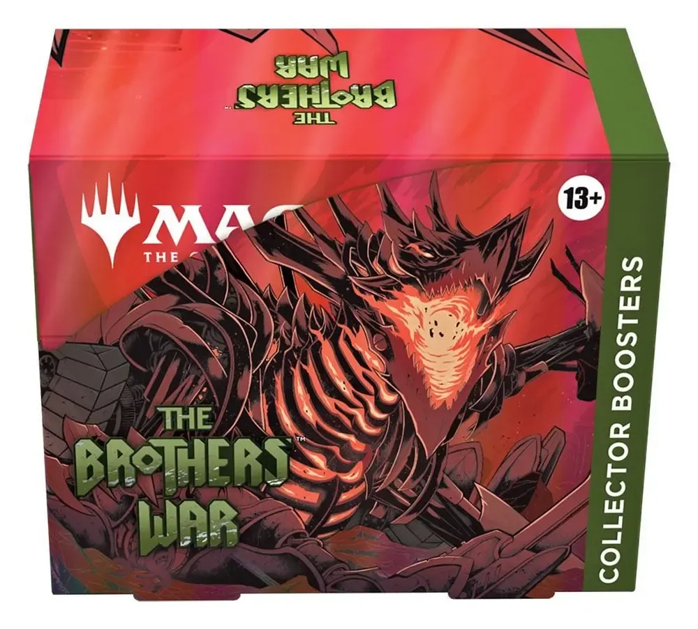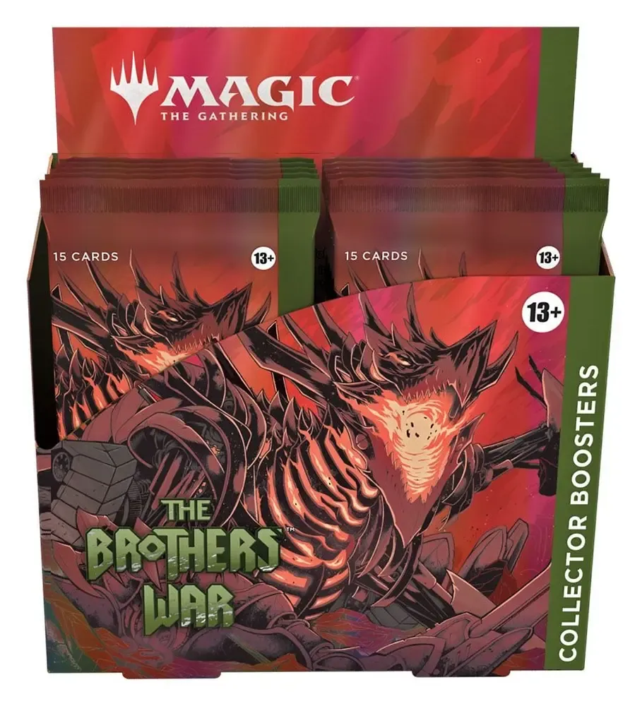 Ein Krieg der Brüder Sammler-Booster-Display enthält 12 Krieg der Brüder Sammler-Booster. Jeder Sammler-Booster enthält 15 Magic: The Gathering Karten und 1 doppelseitige Foil-Spielsteinkarte, darunter eine Kombination aus 1 besonderen sagenhaft seltenen Karte, 5 Karten der Seltenheit selten oder höher, 4 nicht ganz so häufigen Karten, 4 häufigen Karten und 1 Länderkarte. Jeder Booster enthält insgesamt 10-11 traditionelle Foilkarten.