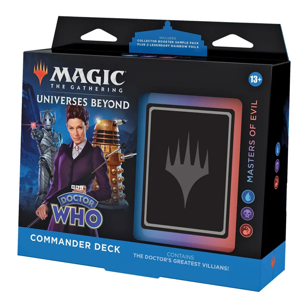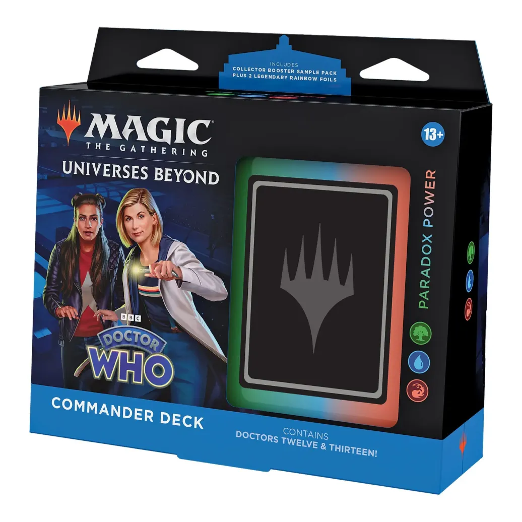 In Commander kommen vier Spieler zusammen, um ihre Stärke und Strategie unter Beweis zu stellen, wobei ein Spieler am Ende die Nase vorn hat. Jedes spielfertige Magic: The Gathering Jenseits des Multiversums: Doctor Who™ Commander-Deck mit 100 Karten macht es Commander-Fans in Ihrem Store leicht, sich ein Deck zu schnappen und sofort zu spielen.