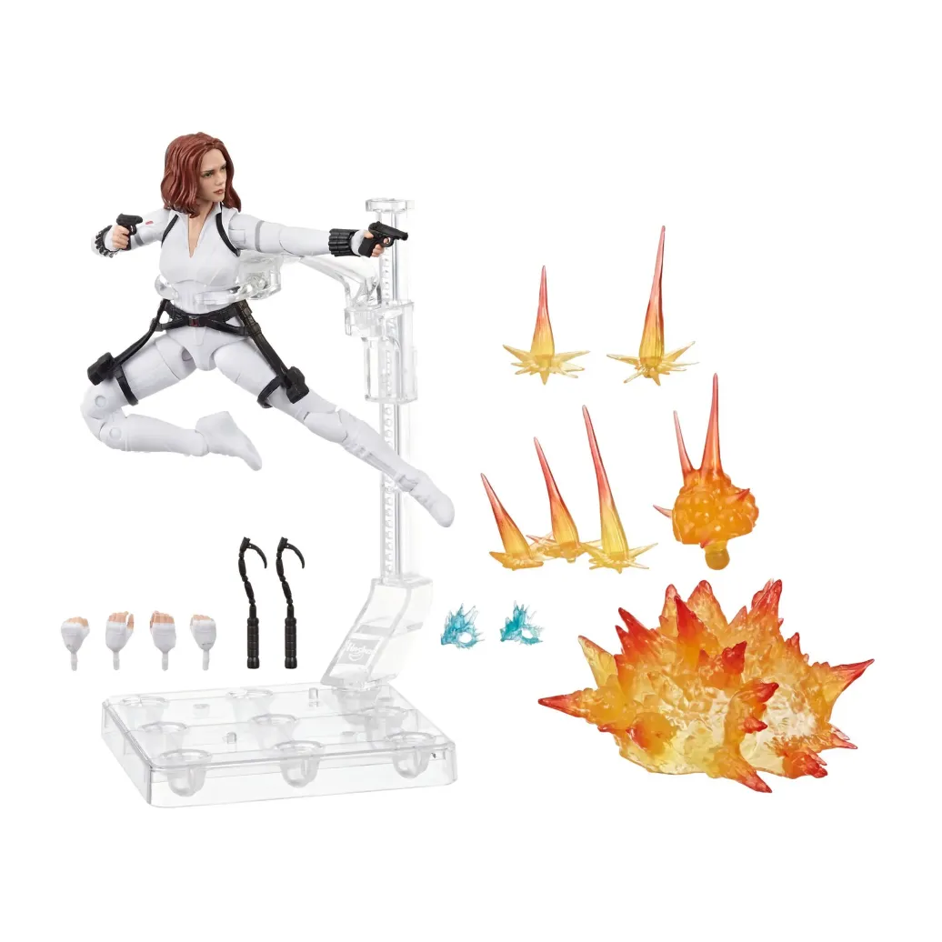 Aus Hasbros Marvel Legends Reihe kommt diese voll bewegliche Black Widow Actionfigur. Sie ist ca. 15 cm groß und wird mit jeder Menge Zubehör, austauschbaren Teilen und Figurenständer in einer Fensterbox geliefert.