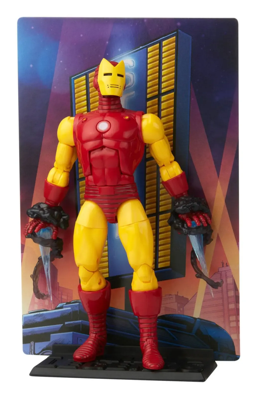 Die Iron Man Figur aus der Series 1 enthält 9 Accessoires und einen doppelseitigen Hintergrund, um sie perfekt in Szene zu setzen.