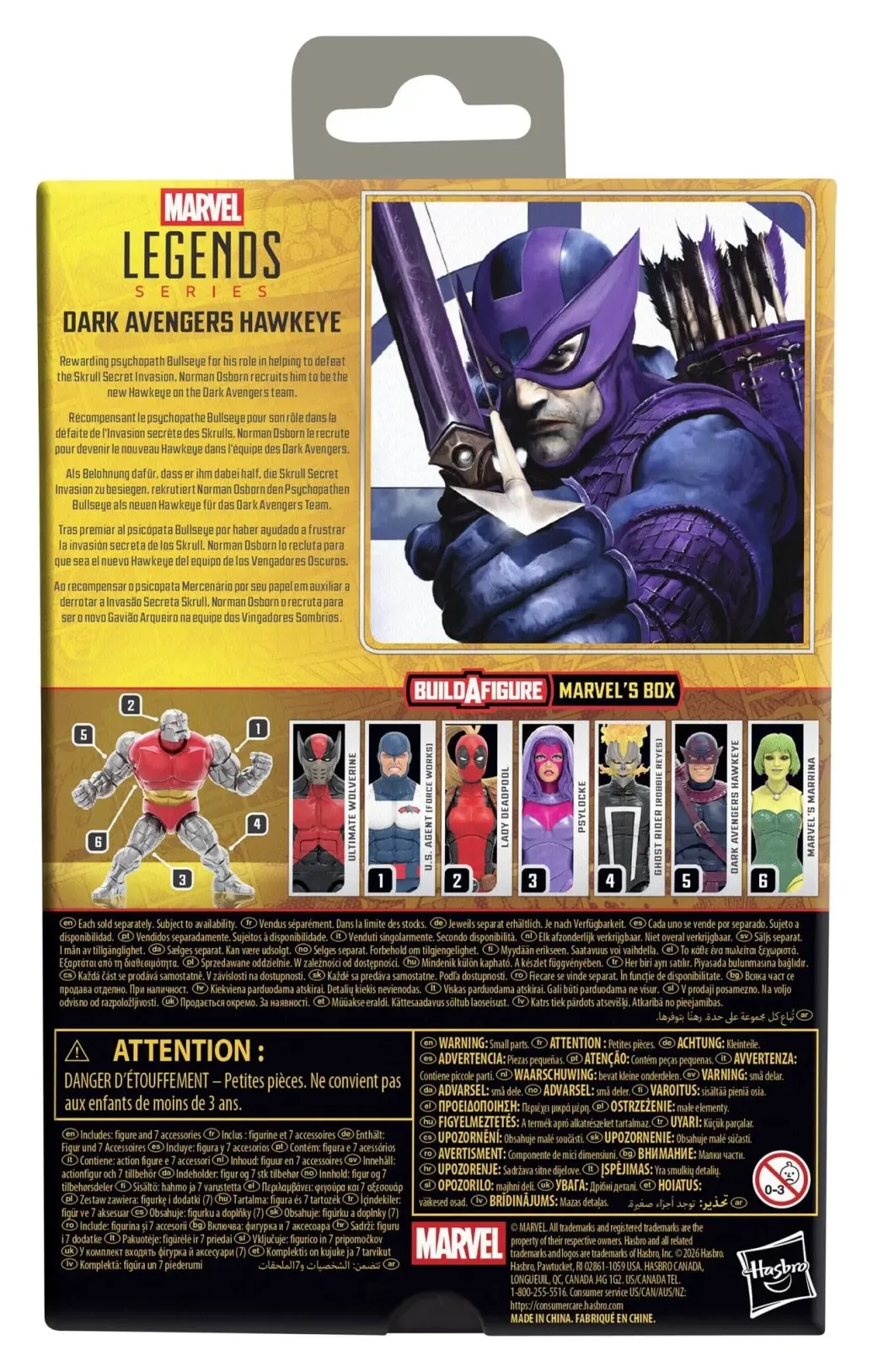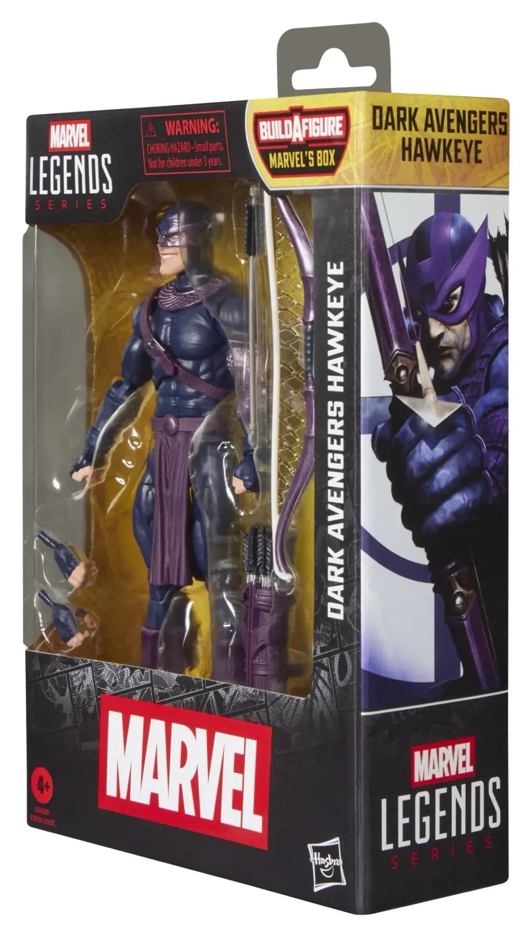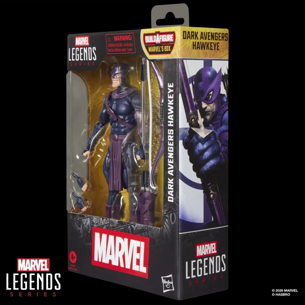 Mit der Dark Avengers Hawkeye Figur aus der Hasbro Marvel Legends Series kann die Spannung und das Wunder des Marvel Universums in der eigenen Sammlung zum Ausdruck gebracht werden. Die Marvel Sammelfigur in einer Skala von 15 cm kommt im Look des Charakters aus den Marvel Dark Avengers Comics. Die Dark Avengers Hawkeye Action-Figur ist vollbeweglich, beeindruckt mit einem Premium-Design und verfügt über einen beweglichen Kopf sowie bewegliche Arme und Beine. Das Marvel Action-Figurenset enthält 7 Accessoires - 2 austauschbare Hände, Bogen, Pfeil, Köcher und 2 Build-A-Figure Elemente für Marvel's Box. Die zusätzliche Figur kann mit den Marvel Legends Action-Figuren U.S. Agent (Force Works), Lady Deadpool, Psylocke, Ghost Rider (Robbie Reyes) und Marvel's Marrina vervollständigt werden. (Jeweils separat erhältlich. Je nach Verfügbarkeit.) Hasbro Marvel Action-Figuren in einer Skala von 15 cm sind hervorragend geeignet, um sie in einer Fan-Kollektion zu präsentieren. Mit Marvel Legends Action-Figuren und Marvel Sammlerobjekten können die Szenen aus den Marvel Comics zu Hause nachgestellt werden.