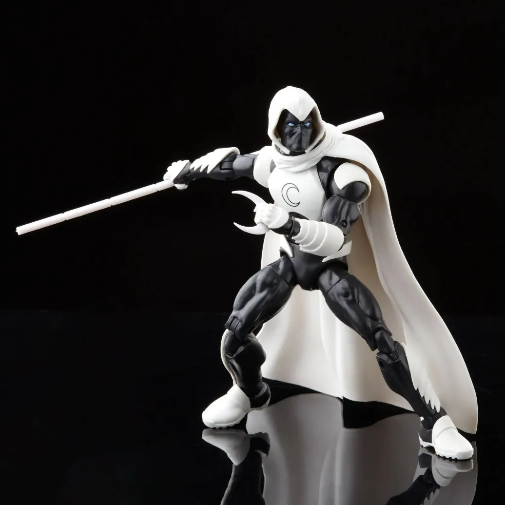 Diese 15 cm große Marvel Legends Action-Sammelfigur ist nach der Erscheinung von Moon Knight in den Marvel's Moon Knight Comics gestaltet und kommt mit Premiumdetails und mehreren Bewegungspunkten.