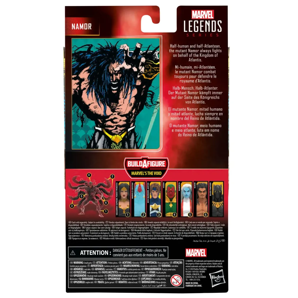 Mit Namor aus der Hasbro Marvel Legends Series kann die Spannung und das Wunder des Marvel Universums in der eigenen Sammlung zum Ausdruck gebracht werden. Die Marvel Sammelfigur in einer Skala von 15 cm kommt im Look des Charakters aus den Marvel Comics Namor: The Sub-Mariner. Die vollbewegliche Namor Marvel Legends Figur beeindruckt mit einem Premium-Design und Kopf, Arme und Beine sind beweglich. Das Marvel Action-Figurenset kommt mit 5 Accessoires und 4 Build-A-Figure Elementen für Marvel's The Void. Um die zusätzliche Figur zu erstellen, gibt es auch Marvel's Crystar, New Warriors Justice, Squadron Supreme Power Princess, Vision und Namorita Marvel Legends Action-Figuren (jeweils separat erhältlich. Je nach Verfügbarkeit). Hasbro Marvel Action-Figuren in einer Skala von 15 cm sind hervorragend zum Darstellen und Präsentieren in einer Fankollektion geeignet. Mit Marvel Figuren und Sammelobjekten von Hasbro können die Szenen aus den Marvel Comics auf dem eigenen Regal inszeniert werden.