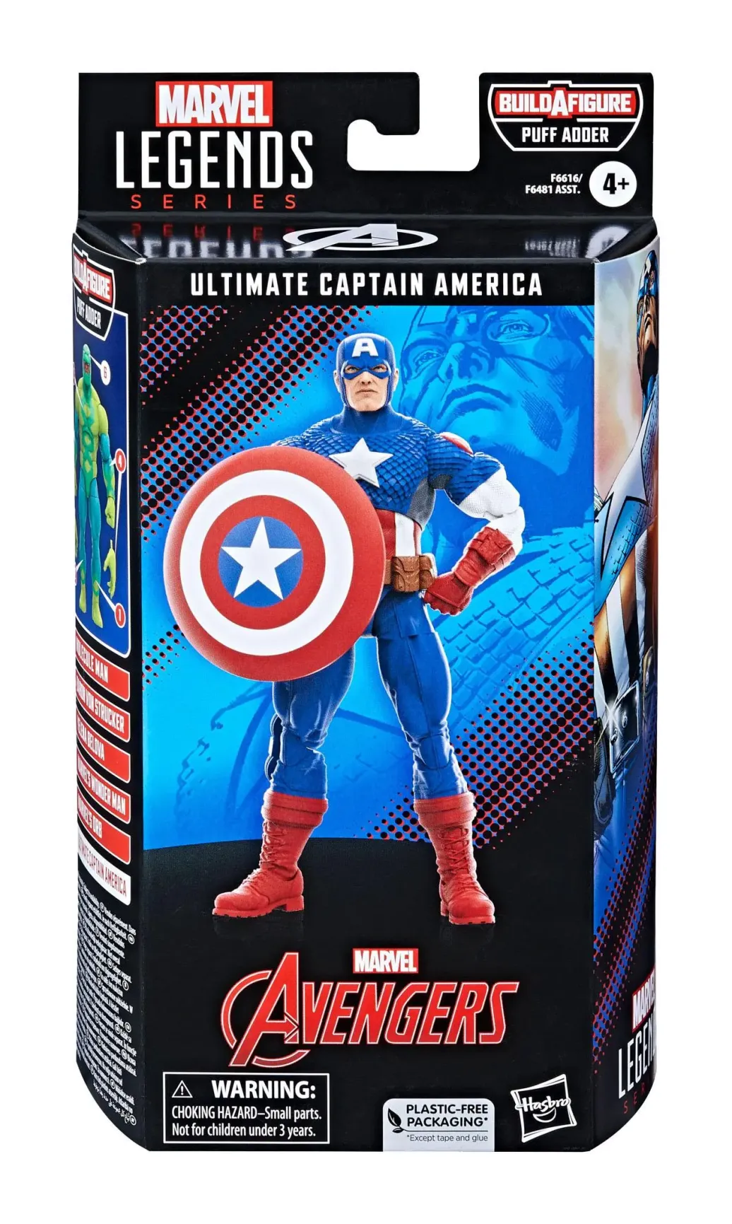 Diese 15 cm große Marvel Legends Classic Comic Sammelfigur ist nach der Erscheinung von Ultimate Captain America aus Ultimates gestaltet und präsentiert sich mit Premiumdetails und mehreren Bewegungspunkten. Sie kommt mit 3 Accessoires wie austauschbaren Händen und seinem berühmten Schild sowie einem Build-A-Figure Element.