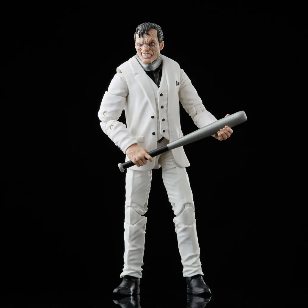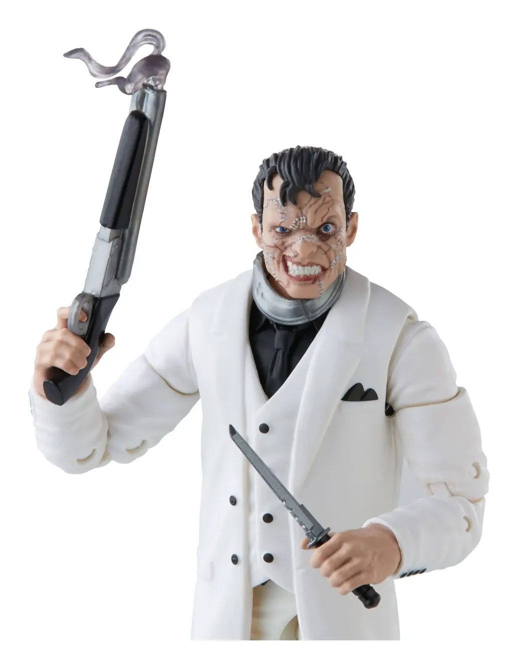 SCHURKENHAFTES ZUBEHÖR: Marvel's Jigsaw kommt mit einem kleinen Waffenarsenal, darunter ein Baseballschläger, eine abgesägte Schrotflinte und Zubehör für Rauch und Mündungsfeuer