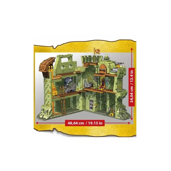 Das vollständig zusammenbaubare Castle Grayskull ist ca. 34 cm hoch und lässt sich aufklappen, wodurch im Inneren verschiedene Features, wie z.B. Waffen, Raketenwerfer, ein Aufzug, eine Zugbrücke usw. zum Vorschein kommen.