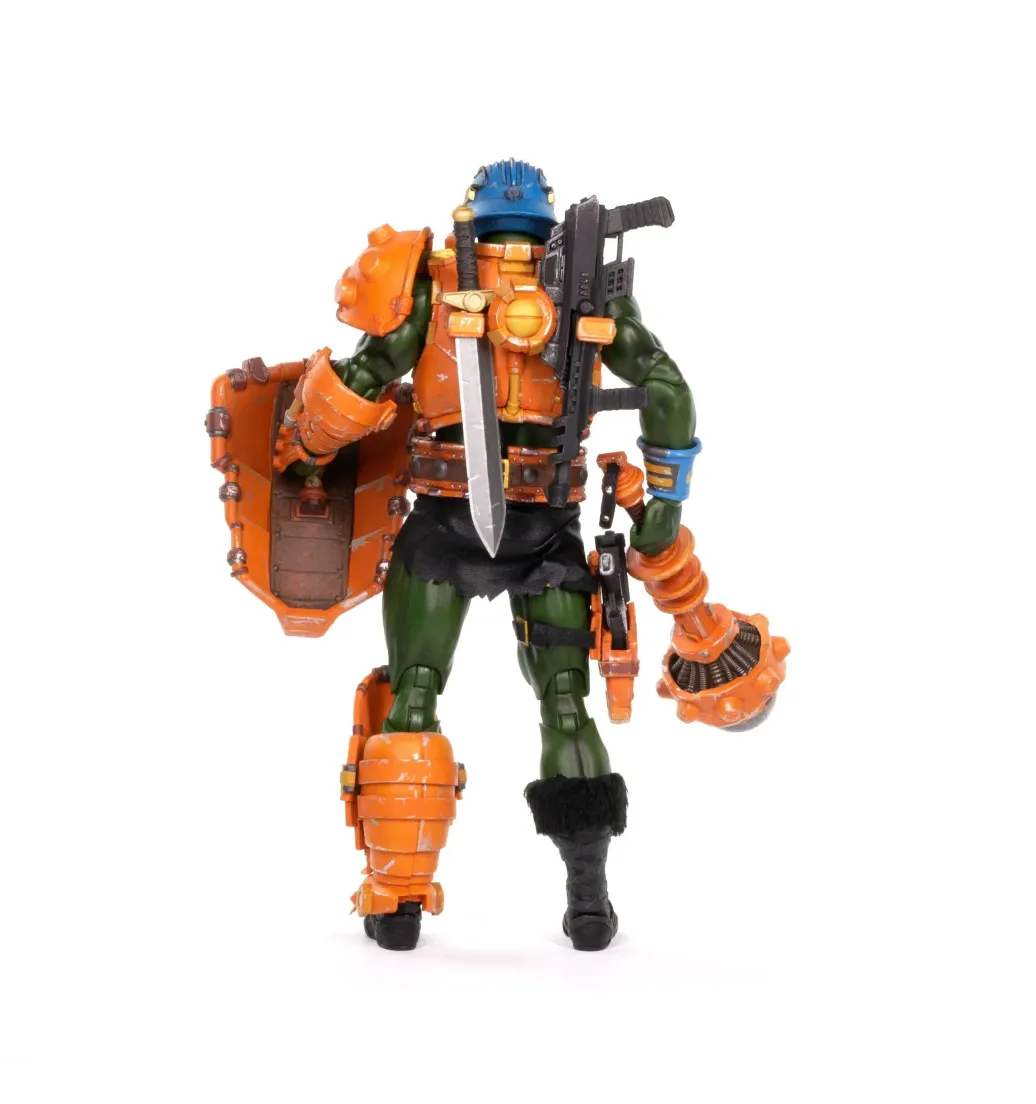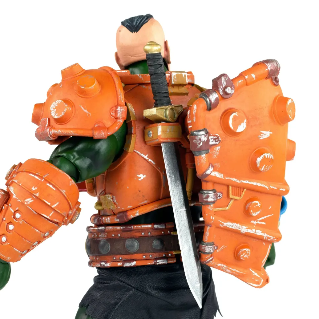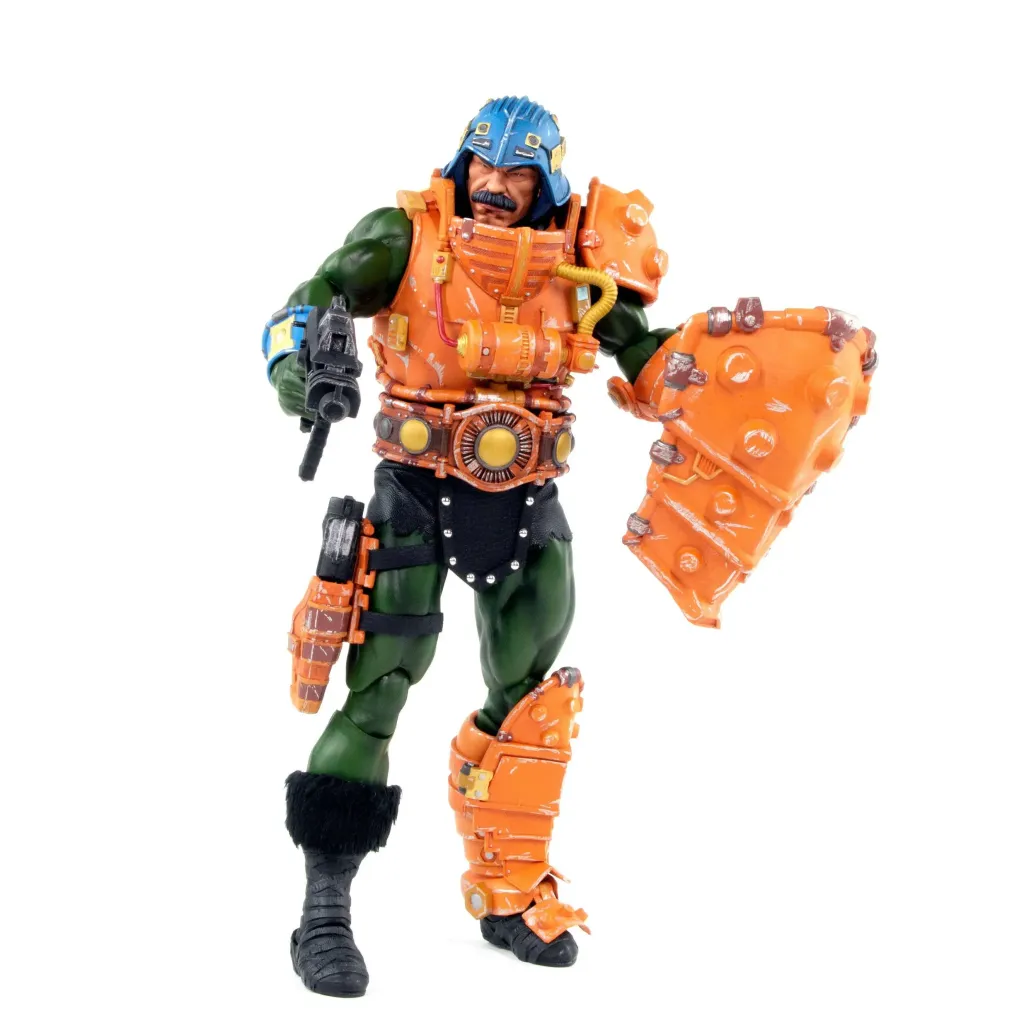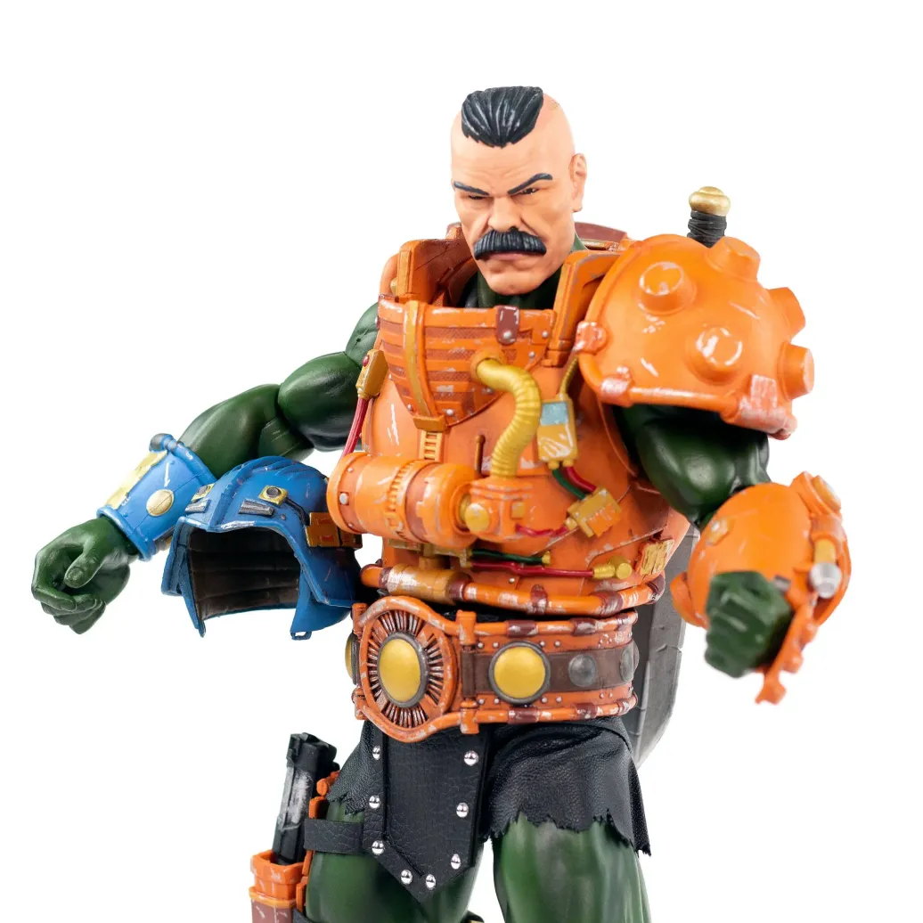 Zu Masters of the Universe kommt diese detailreiche Actionfigur von Man At Arms. Sie ist ca. 30 cm groß und wird mit weiterem Zubehör und austauschbaren Teilen in einer bedruckten Box geliefert.