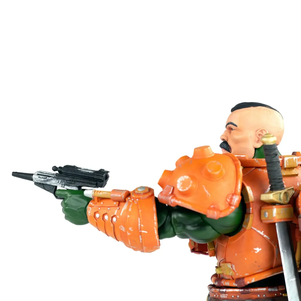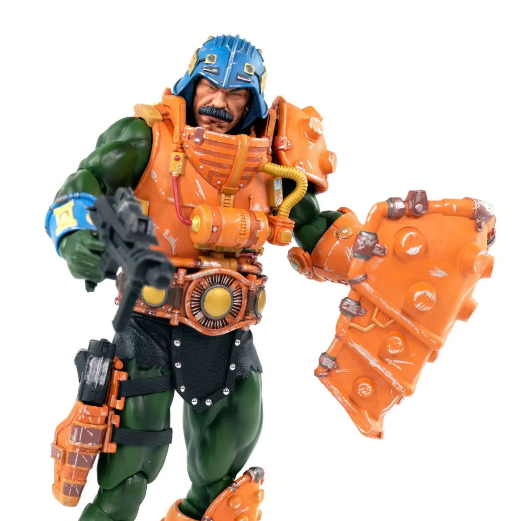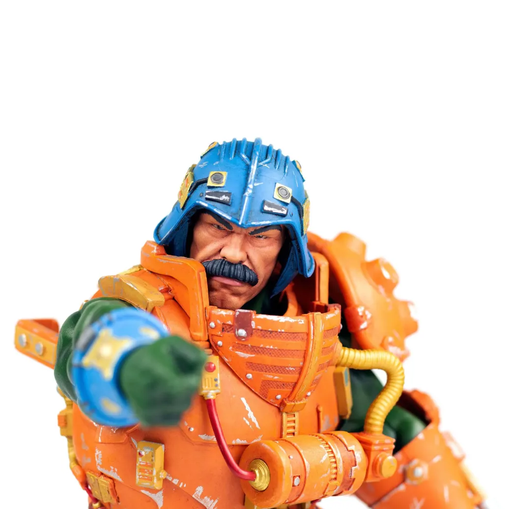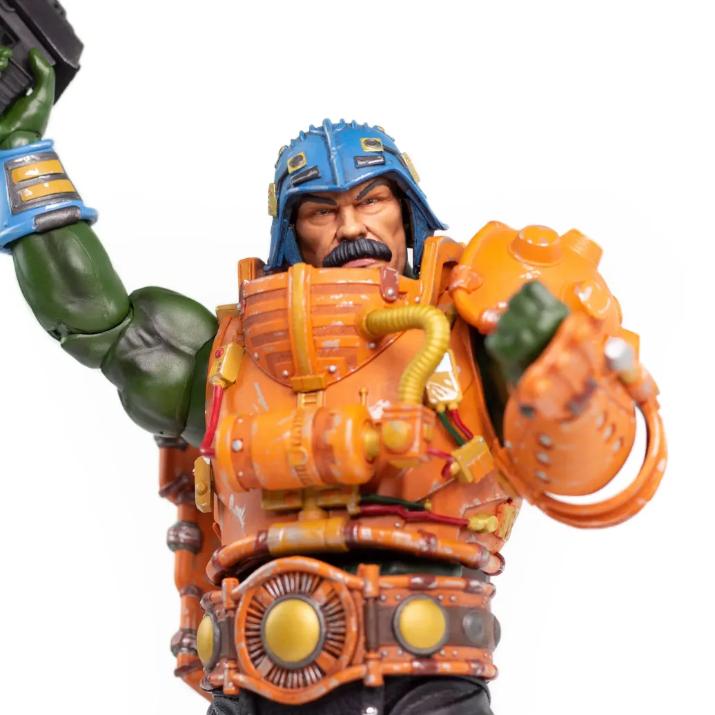 Zu Masters of the Universe kommt diese detailreiche Actionfigur von Man At Arms. Sie ist ca. 30 cm groß und wird mit weiterem Zubehör und austauschbaren Teilen in einer bedruckten Box geliefert.