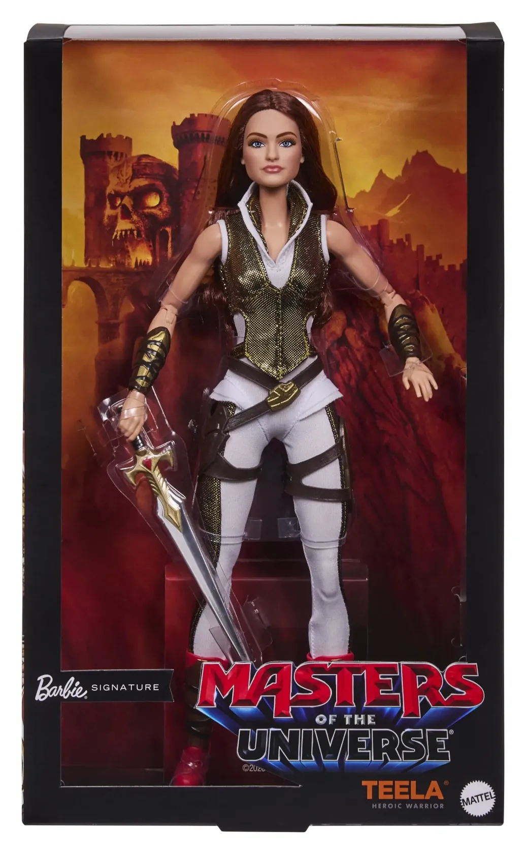 Teela, Anführerin der königlichen Garde, ergänzt die Barbie Signature-Kollektion und ist bereit, den Palast von Eternos zu verteidigen! Rechtzeitig zum kommenden Masters of the Universe Film, der im Juni 2026 erscheint, kann dieser legendäre Charakter als Spielzeug und Sammlerstück gefeiert werden. Diese Teela-Sammelfigur in hochwertiger Kampfausrüstung ist bereit, Prinz Adam zu beschützen – ausgestattet mit ihrem klassischen Jumpsuit, Stiefeln, Schwert und einer Rüstung mit goldenen Details. MOTU-Fans können auch die Barbie Signature He-Man Ken-Puppe sammeln, um das starke Duo zu vervollständigen. Inklusive Puppenständer und Echtheitszertifikat. Die Puppe kann nicht von allein stehen. Abweichungen in Farbe und Gestaltung vorbehalten.