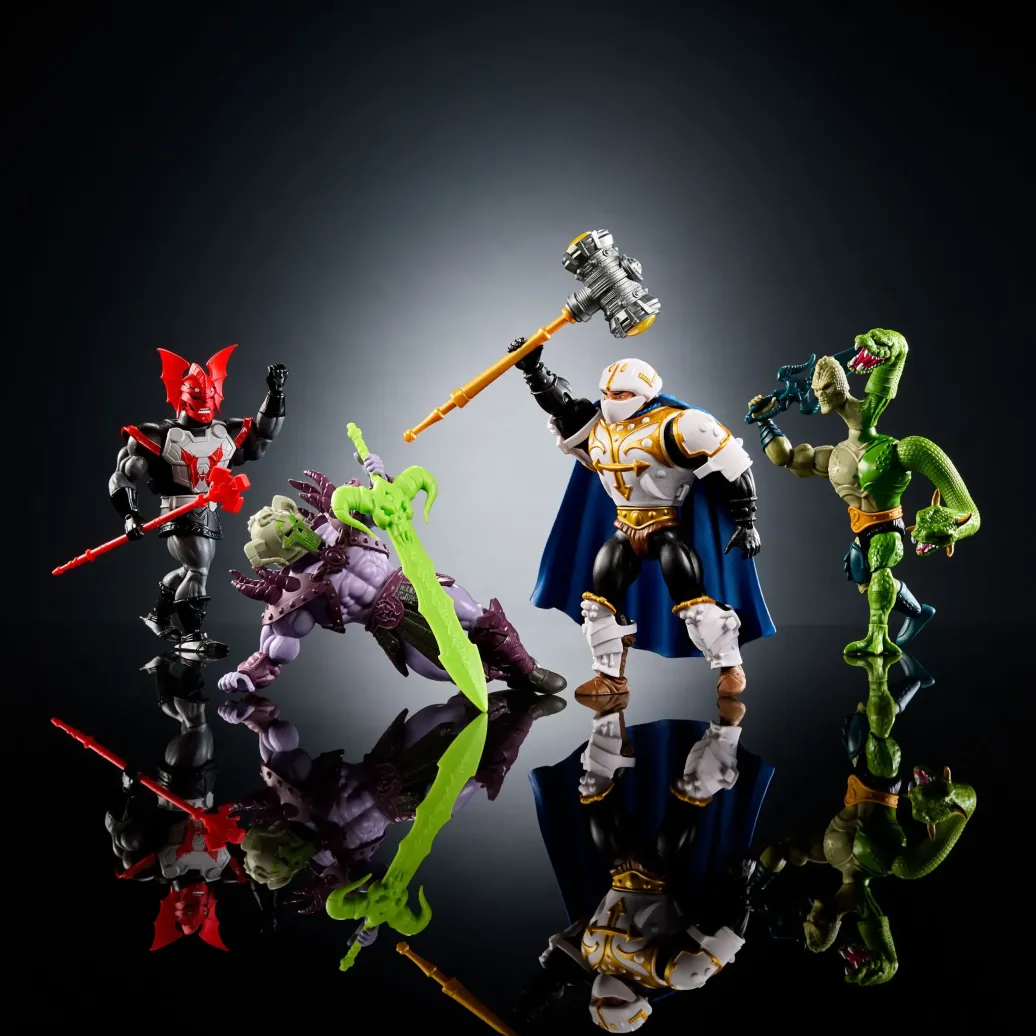 Dieses Set enthält vier detailreiche Figuren, jede mit einem einzigartigen Look und unaufhaltsamer Kampfkraft, bereit, sich in den ewigen Konflikt um Eternia zu stürzen.