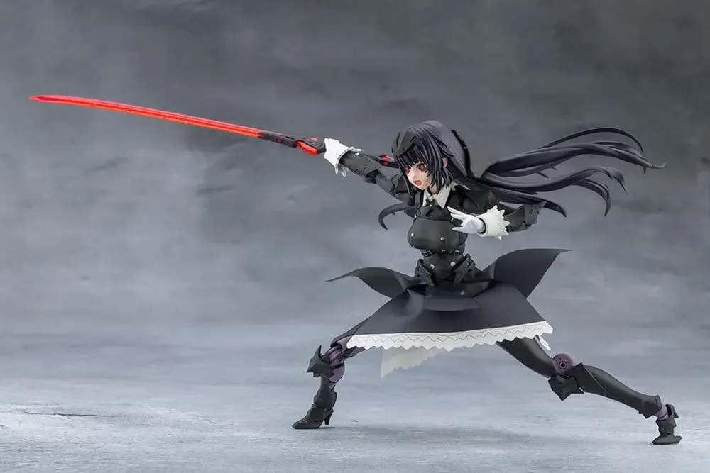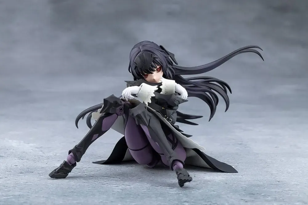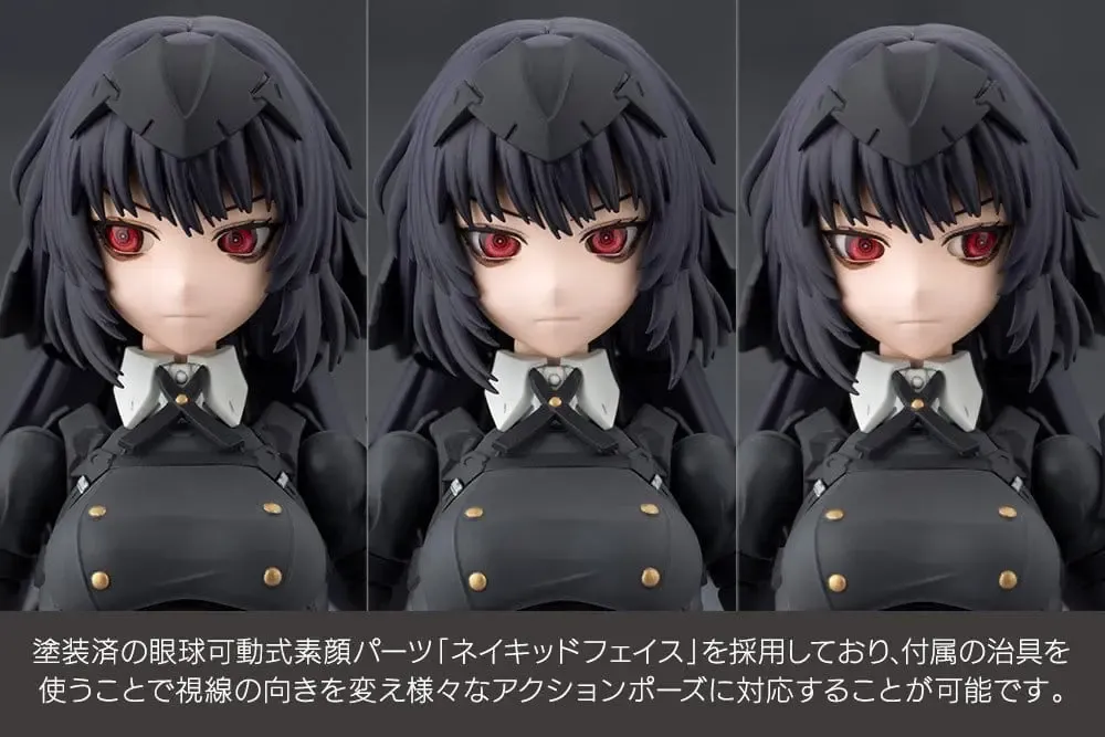„Für das Publikum: Nervenkitzel und Spannung.“ „Für dich: der Tod.“ Die Protagonistin von Megalomaria Unlimited Universe, Maria Kagaribi, feiert ihr Debüt im Marionettenstil! Dieses ambitionierte Produkt wurde als Flaggschiff der Megalomaria-Serie entwickelt und verfügt über neu eingeführte weiche Rockteile und ein Gesicht mit vorbemalten beweglichen Augenteilen sowie den neu entwickelten Hüftgelenkmechanismus Maria Swing. Bewegungsmerkmale: Das Modell verfügt über mehr als 50 Gelenkpunkte am gesamten Körper, und durch die beweglichen Augen des Naked Face erreicht die Gesamtzahl beeindruckende 81 Punkte. Das lange, schöne Haar des Modells verfügt über ein Gelenk in jeder Strähne, was flexible Bewegungen ermöglicht und für einen natürlichen Fall sorgt. Auch die Haarwurzeln sind beweglich, sodass eine Anpassung an für Action-Posen geeignete Winkel möglich ist. Die Hüftgelenke verwenden das neu entwickelte Maria Swing, wodurch sich die linke und rechte Seite unabhängig voneinander bewegen können, während die natürliche, lebensechte Silhouette einer lebenden Figur erhalten bleibt. Die Schultern bestehen aus mehreren Gelenken, die Posen wie verschränkte Arme oder das Führen eines Zweihandschwerts nach Belieben ermöglichen. Die Ärmelteile verwenden eine neu entwickelte Struktur, die trotz ihres einfachen Designs verhindert, dass sie die Bewegung des Handgelenks beeinträchtigen. Vorbemalter Rock aus weichem Material: Die Rockteile im Military-Gothic-Stil bestehen aus einem ultradünnen Material mit einer Stärke von weniger als 0,02 cm, wodurch die Behinderung bei Action-Posen minimiert wird. Der Rock besteht aus vier Teilen, die beidseitig lackiert und selektiv mit dimensionalen Details bedruckt sind, um die Textur zu verbessern. Leichter Ausrüstungsmodus: Durch Entfernen der Hüftpanzerungsteile und des Rocks kann das Modell in einen leichten Ausrüstungsmodus versetzt werden, der noch akrobatischere Action-Posen ermöglicht. Eine spezielle Abdeckung für den leichten Ausrüstungsmodus ist im Lieferumfang enthalten, um das Erscheinungsbild weiter zu verbessern und eine Vielzahl von Posen zu ermöglichen, die die geschmeidige Hüftlinie nutzen. Nacktes Gesicht: Wie bei Emulator enthält dieses Kit bewegliche Augen und ein vorbemaltes Gesicht. Der Gesichtsteil wurde im Tampondruckverfahren hergestellt, die Augen im UV-Druckverfahren, sodass allein durch den Zusammenbau ein nahezu perfektes Finish erzielt werden kann. Die Augen können mit dem mitgelieferten Werkzeug so eingestellt werden, dass sie unterschiedlich aussehen. Die Iris hat ein glänzendes Finish, das einen Kontrast zum anorganischen Emulator bildet. Es sind zwei Gesichtsausdrücke enthalten, ein Standardgesicht und ein schreiendes Gesicht, die mit Gesichtsteilen aus Bausätzen wie Principal, Ruby Eye und natürlich Sousai Shoujo Teiens Kuon Yakushiji austauschbar sind. Dieser Bausatz verwendet die Hautfarbe C. Masquerade-Form: Ein anorganischer Masken-Teil, der das Gesicht verdeckt, ist enthalten und mit den Gesichtsteilen „Naked Face“ oder „Sousai Shojo Teien“ austauschbar.