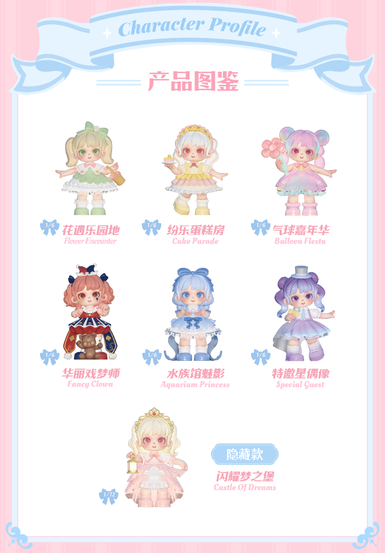 Diese Serie enthält 6 reguläre Designs und 1 geheimes Design. Es handelt sich um PVC Figuren.