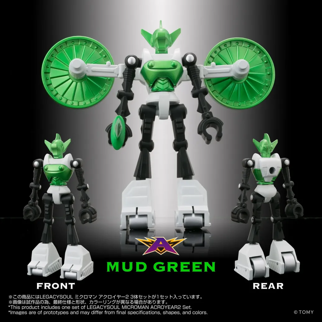 Die "Legacysoul"-Serie ist eine moderne Interpretation von Produkten, die Kinder einst mit ihrem Antrieb, ihrer Bewegung, ihrer Verwandlung und ihrer Wirkung in den Wahnsinn trieben, und verfeinert sie durch neue Mechanismen. Produkte, die in den Erinnerungen der Nutzer schlummern, werden mit der neuesten Technologie weiterentwickelt. *Verkauft in Japan und im Ausland, aber in Japan werden sie ausschließlich über die firmeneigene EC-Website verkauft. Actionfigur: Legacysoul Microman Acroyear 2. Die Microman-Welt, die Sie als Kind fasziniert hat, wird wiederbelebt. Dem damaligen Design folgend, wurde die Figur mit der heutigen Technologie aktualisiert, nicht nur in Design und Proportionen, sondern auch mit einem erhöhten Gelenkbereich von 20 Punkten. Das Sortiment ist ein Set aus drei Figuren: Acroyear 2 A311L Mad Pink, Acroyear 2 A312L Mad Green und Acroyear 2 A313L Mad Blue.