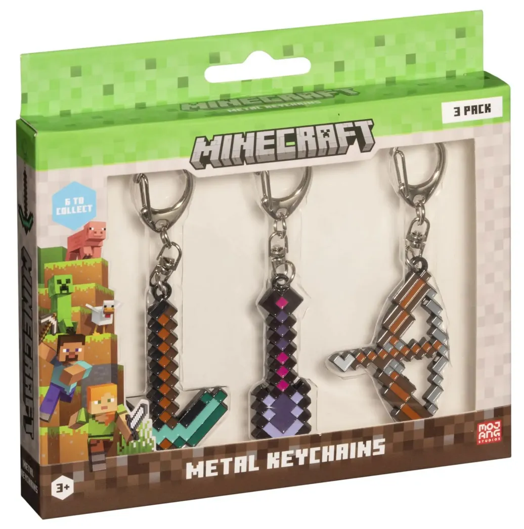 Sortiment mit 12 3er-Packs offiziell lizensierter Schlüsselanhänger aus Metall. Sie werden in einer Blisterverpackung geliefert.