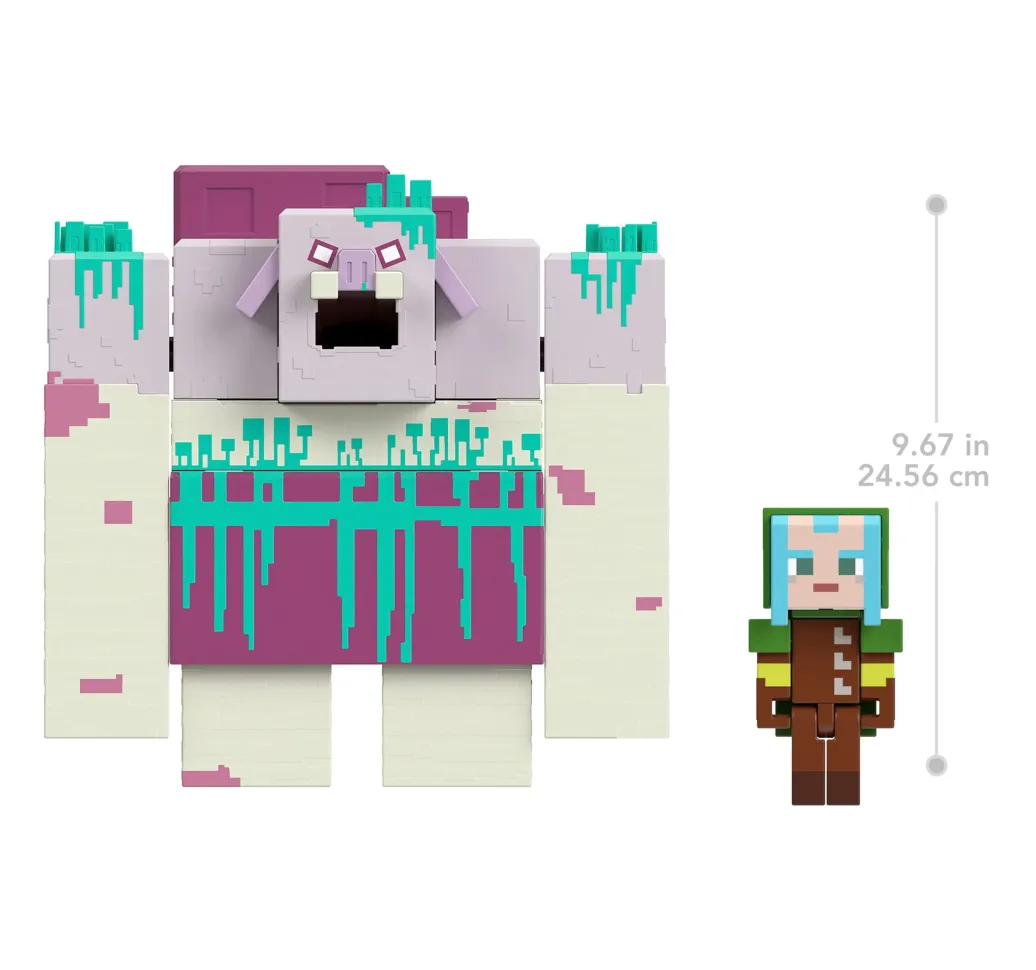 Der Nervenkitzel von Minecraft Legends erwacht zum Leben diese riesige Devourer-Actionfigur mit Kotzattacke will die Oberwelt verschlingen! Dieses Set enthält die furchteinflößende, schleimspuckende Devourer-Figur sowie die maßstabsgetreue, 8 cm große Figur des heldenhaften Rangers, jederzeit bereit zum Kampf und zur Verteidigung! Einfach die Pilzspore am Devourer befestigen und Schleim einfüllen wann wird er sich erbrechen? Sobald die Pilzspore gedrückt wird, übergibt der Devourer sich über den mitgelieferten Ranger. Diese Figuren sind ihren Pendants aus dem Minecraft Legends Videospiel originalgetreu nachempfunden. Die Fans werden sich über die Größe dieses superüblen Bösewichts freuen! Abweichungen in Farbe und Gestaltung vorbehalten.
