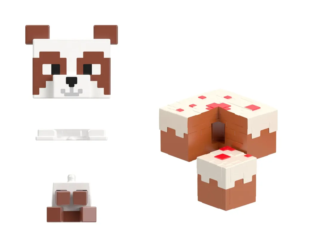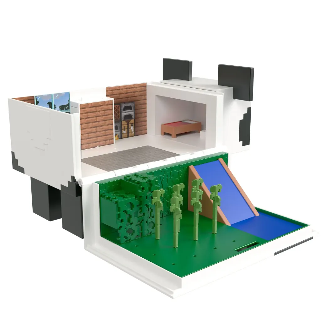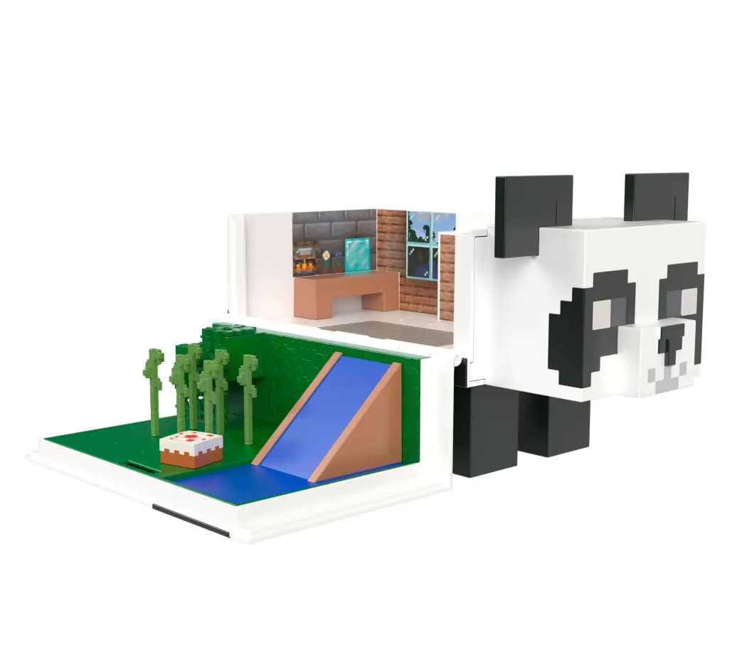 Beim Öffnen dieses riesengroßen Minecraft-Panda-Spielsets kommen ein zweietagiger Fungalow für die zum Set gehörenden Mob Head Minis Panda" und Baby Panda" zum Vorschein. Lass die Figuren von der oberen Etage über die Wasserrutsche" in den Vorgarten schlittern. Schnapp dir ein Bambusstäbchen und komm mit zur Geburtstagsparty. Vergiss nicht, ein Stück dieses leckeren Kuchens zu probieren! Dieses Spielset bietet endlosen Spaß für Minecraft-Fans, die hier Panda-Abenteuer ausleben können. Im Set können zudem weitere Mob Head Minis (separat erhältlich) aufbewahrt werden. Abweichungen in Farbe und Gestaltung vorbehalten.