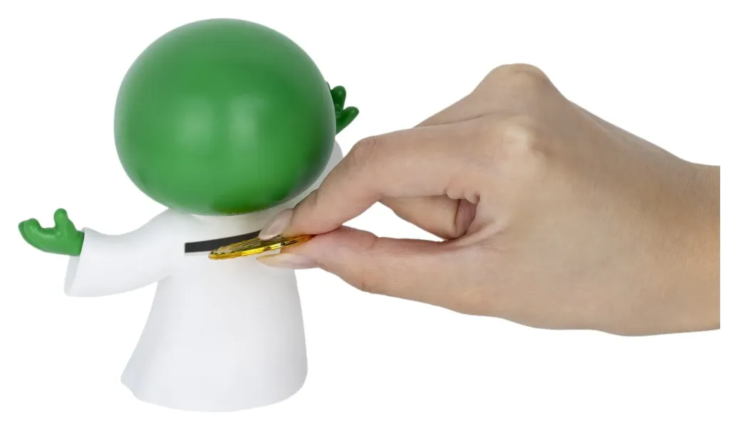 - Münzschlitz auf der Oberseite, der Funktionalität mit Sammlerwert verbindet