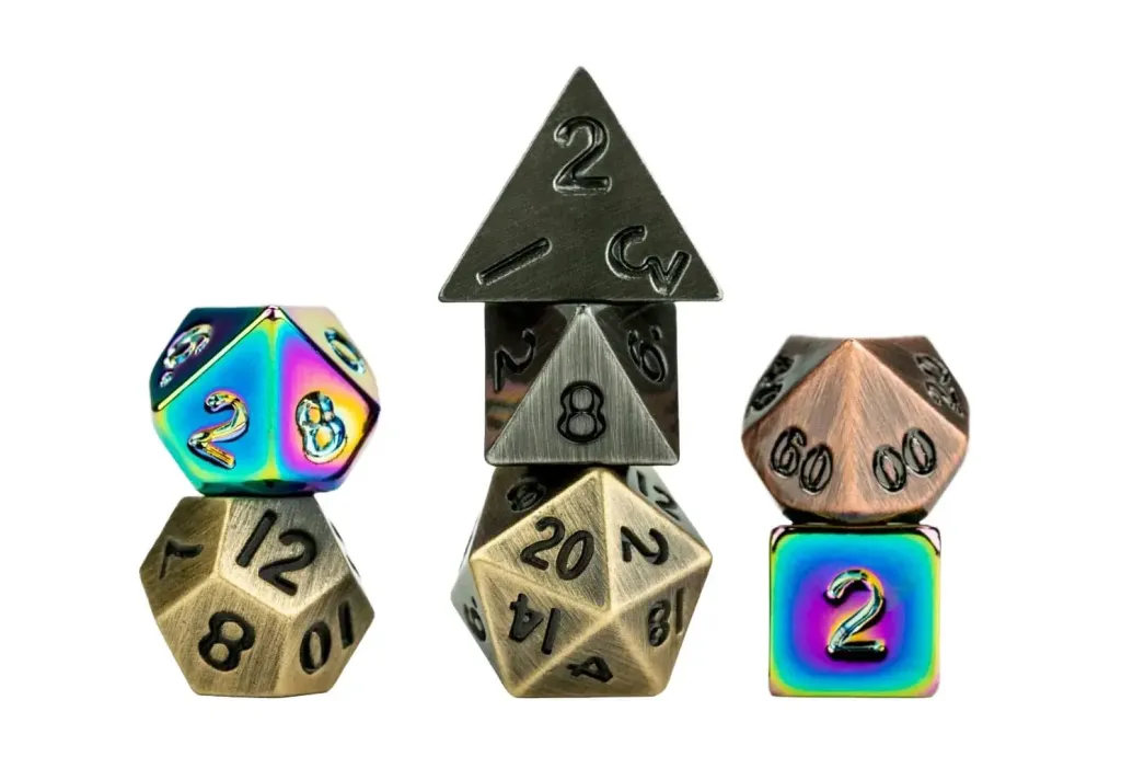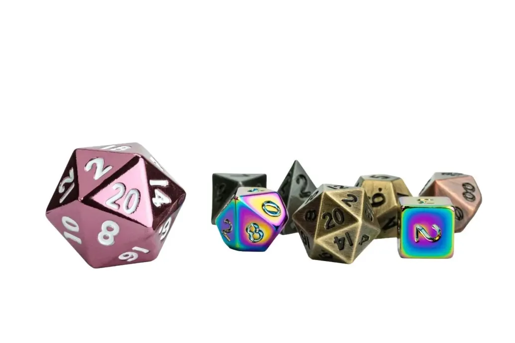 Klein, aber oho - unsere Mystery Misfit Mini-Metallwürfel-Sets sind zwar handlich, haben es aber in sich. Jedes 7-teilige Set besteht aus unterschiedlichen Würfeln, die aus massivem Metall gegossen sind und genau das Gewicht und die Klangfülle bieten, die Spieler lieben. Dank ihrer kompakten Größe lassen sie sich leicht transportieren und schnell würfeln. Als Teil der "Mystery Misfit"-Reihe ist jedes Set eine Überraschung.