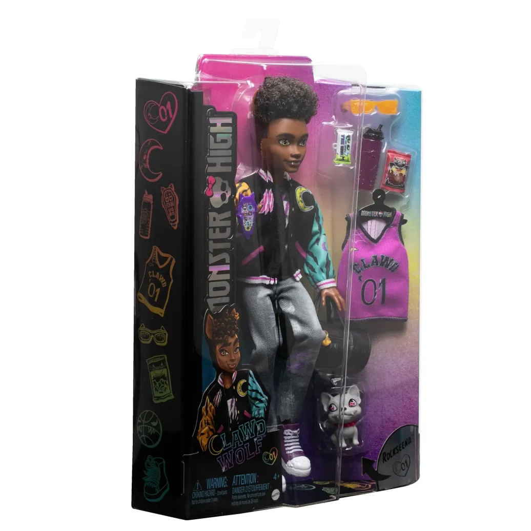 Monster High hat ein neues Mitglied: Clawd Wolf, der Bruder von Clawdeen Wolf! Zu diesem klauenbewehrten Monster gesellt sich sein pelziges freundliches Haustier, die Gargoyle-Bulldogge Rockseena. Kinder ab 4 Jahren ergänzen begeistert ihre Monster High Puppensammlung um Clawd Wolf und die zahlreichen monstermäßigen Zubehörteile, die zu Gruselgeschichten anregen! Voll beweglich. Die Puppe kann nicht von allein stehen. Abweichungen in Farbe und Gestaltung vorbehalten.