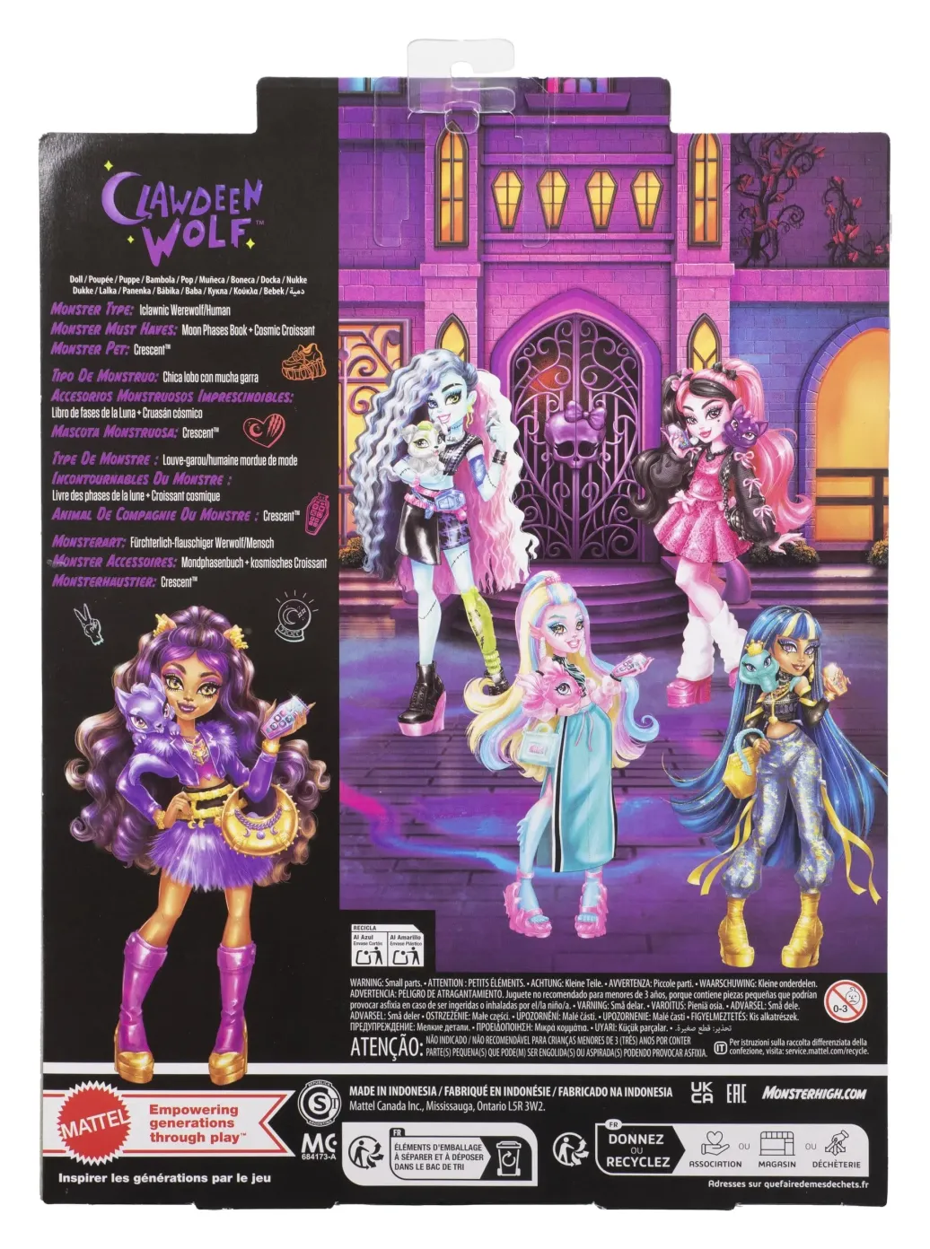Vorsicht Gänsehaut: Der Style dieser Puppe aus der Monster High ist krallig gut! Clawdeen Wolf ist unbändig modisch in ihrem pelzig-violetten Outfit mit sieben Zubehörteilen. Mit dabei ist ihr treues Wölfchen Crescent, das bereit ist für alle möglichen Vollmond-Abenteuer! Kinder ab 4 Jahre werden es lieben, die Räume der Monster High mit dieser beweglichen Clawdeen Wolf-Puppe heimzusuchen. Voll beweglich. Die Puppe kann nicht von allein stehen. Abweichungen in Farbe und Gestaltung vorbehalten.