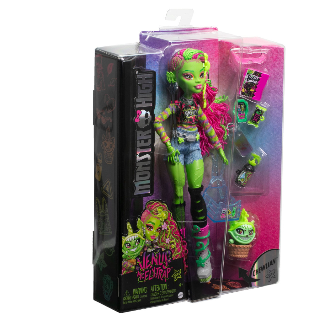 Monster High präsentiert Venus McFlytrap, ein bodenständiges Pflanzenmonster, das sich für den Umweltschutz engagiert. Neben ihrem unheimlich coolen Outfit bringt die Venus McFlytrap-Puppe ihr furchtbar niedliches Haustier Chewlian und jede Menge spuktastische Zubehörteile zum Geschichtenerzählen mit. Kinder ab 4 Jahren werden ihre Monster-High-Puppensammlung liebend gern um diese Puppe erweitern. Voll beweglich. Die Puppe kann nicht von allein stehen. Abweichungen in Farbe und Gestaltung vorbehalten.