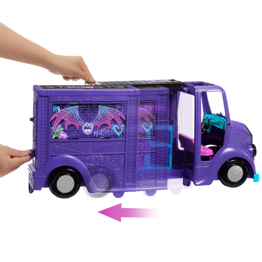 Das Monster High Fangtastic Food-Truck-Spielset enthält eine Draculaura-Puppe, einen Food-Truck mit ausklappbarer Bühne und über 13 Küchen- und Musikzubehörteile für unendlichen Spielspaß. In ihrem rosa Kleid und ihrer rosa Blumenkrone ist Draculaura perfekt für das Monster Fest, dem angesagtesten Musikfestival des Jahres, gekleidet, um die ganze Nacht hindurch zu tanzen. Mit diesem 2-in-1-Fahrzeug-Spielset lässt sich in der Küche etwas unheimlich Leckeres zusammenbrauen oder auf der Bühne eine schrecklich abgefahrene Show abliefern der Fantasie sind keine Grenzen gesetzt. Ein schaurig-cooles Geschenk für Kinder ab 4 Jahren! Die Puppe kann nicht von allein stehen. Abweichungen in Farbe und Gestaltung vorbehalten.