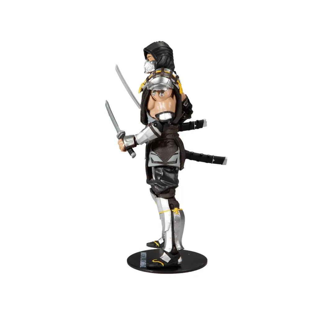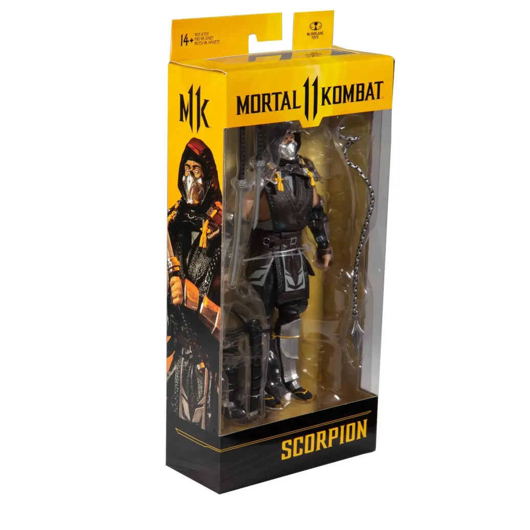 Zum Videospiel Mortal Kombat kommt diese detailreiche, bewegliche Scorpion The Shadow Skin Actionfigur. Sie ist ca. 18 cm groß und wird mit weiterem Zubehör und Base in einer Fensterbox geliefert.