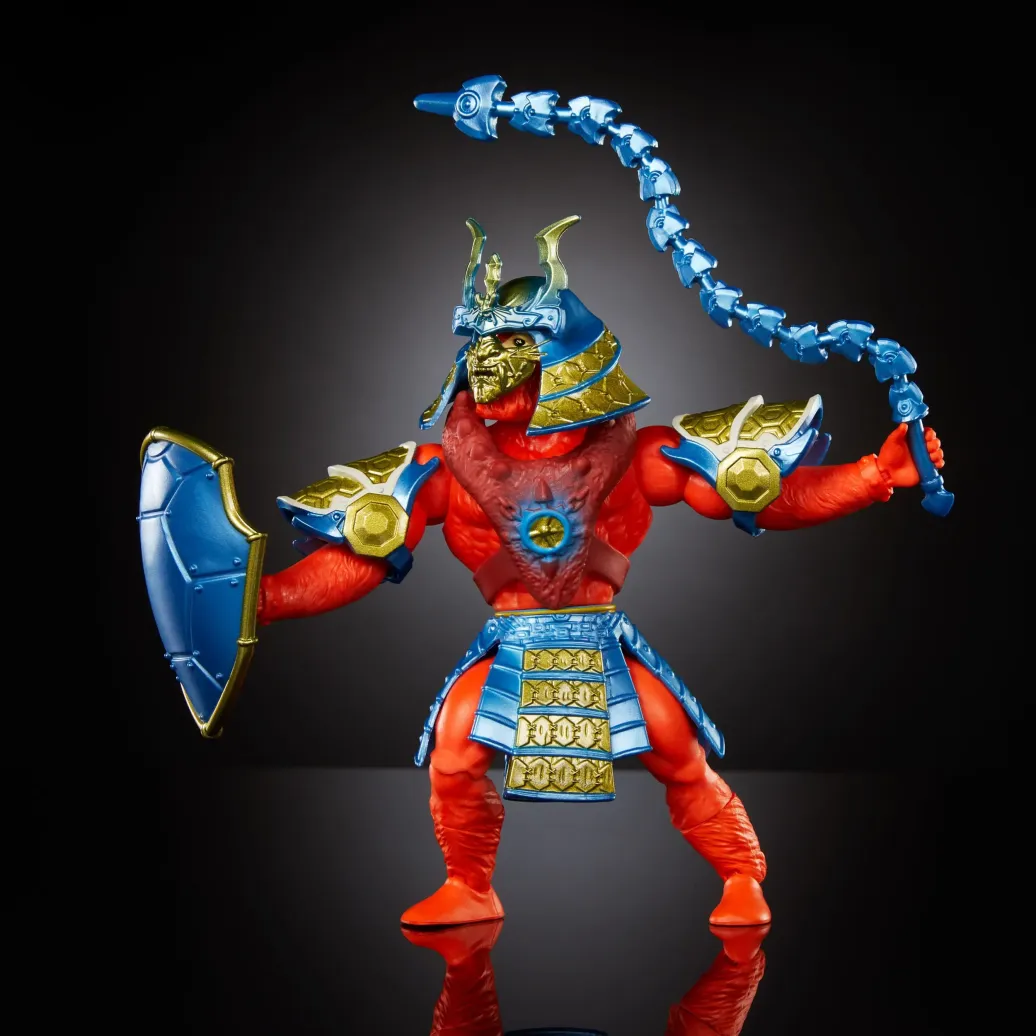 Detailreiche Actionfigur aus Mattels "Turtles of Grayskull"-Reihe. Sie ist ca. 14 cm groß und wird mit weiterem Zubehör in einer Blisterverpackung geliefert.