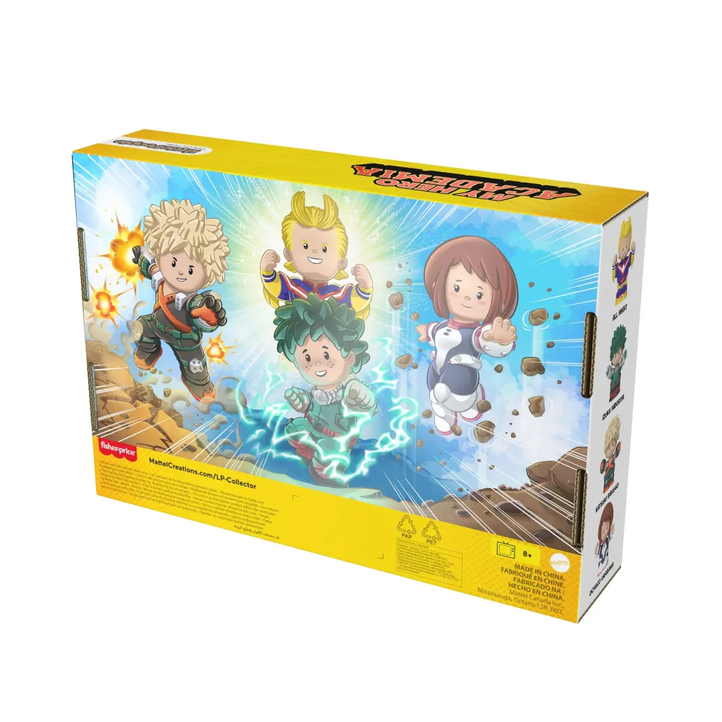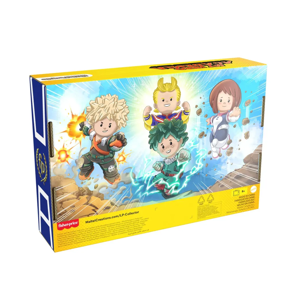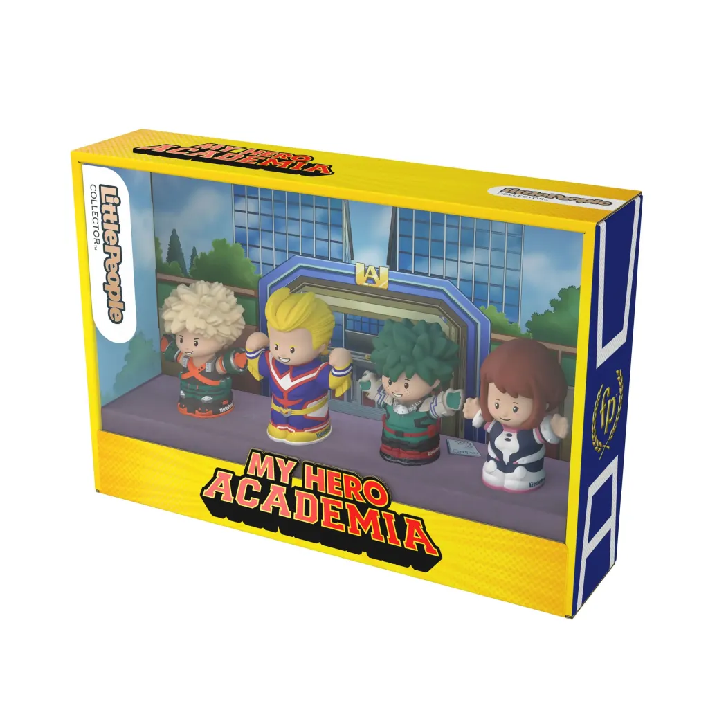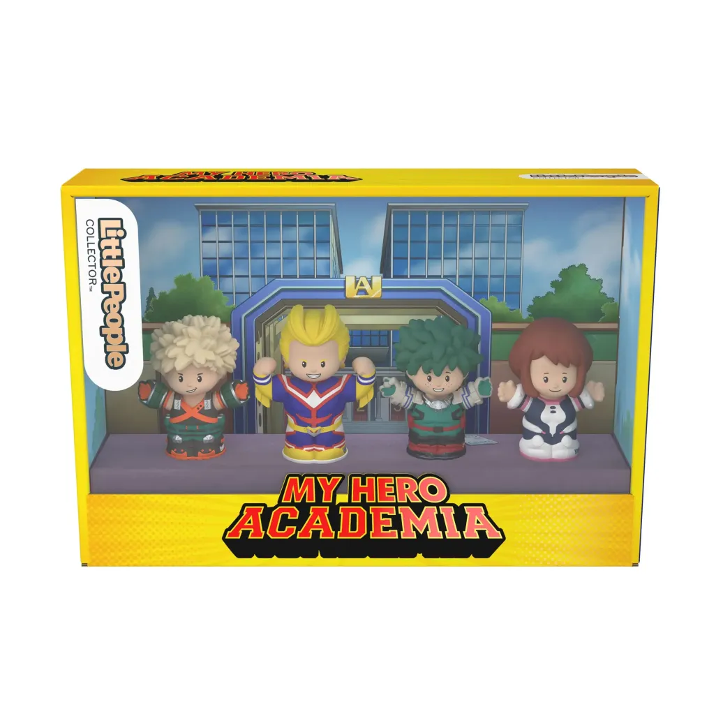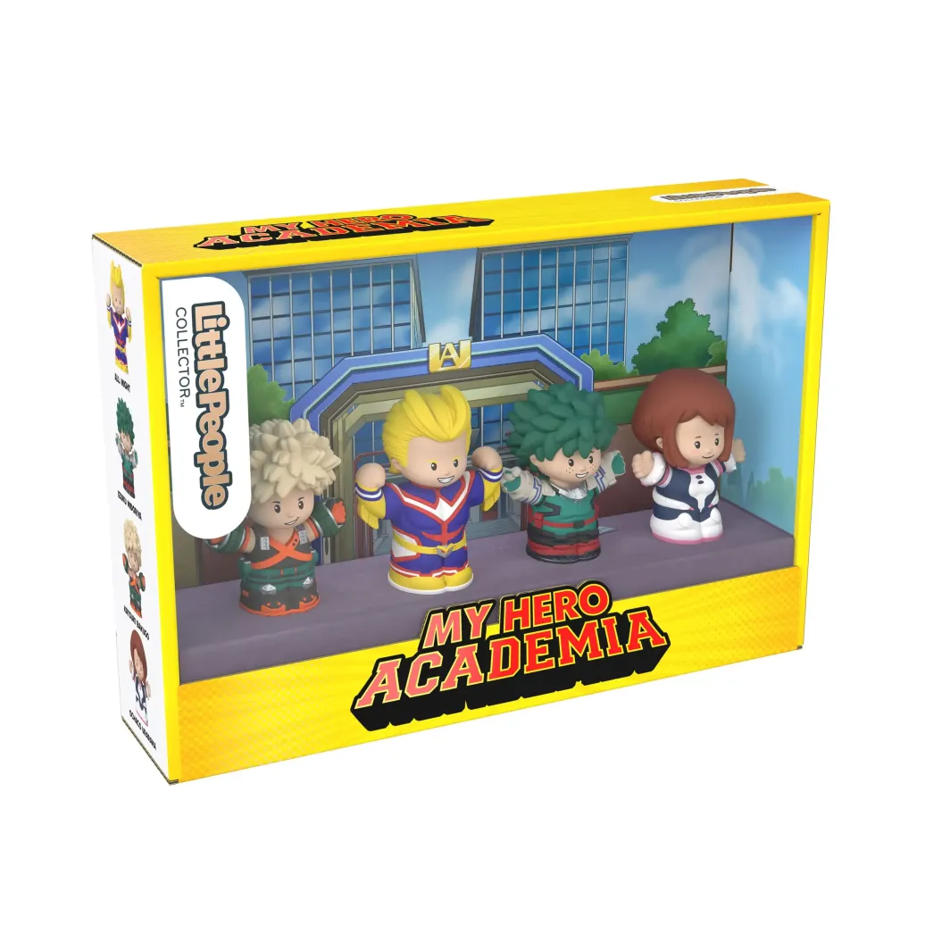 Fans brauchen keine One For All"-Macke für diese Sonderedition der Little People Collector My Hero Academia von Fisher-Price. Inspiriert von der erfolgreichen Mangaserie beinhaltet dieses Figurenset All Might, Izuku Midoriya, Katsuki Bakugo und Ochaco Uraraka, alle im typischen Little People-Stil und gekleidet in ihren charakteristischen Superheldenkostümen. Fans werden diese dekorative Verpackung mit Sichtfenster lieben. Sie erinnert an die U.A. High School und ist mit von der Serie inspirierter Kunst verziert.