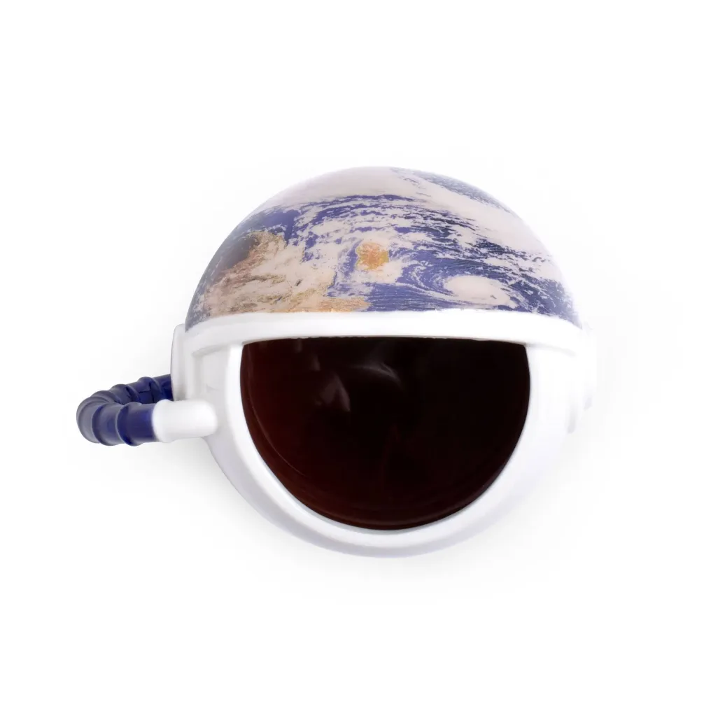 Die NASA Astronautenhelm Tasse mit Farbwechsel sieht nicht nur hübsch aus, sondern hat zudem einen besonderen Effekt... Füll einfach dein Lieblingsheißgetränk in die Tasse und schaue dabei zu, wie die Erdkugel auf magische Art und Weise im Visier sichtbar wird.