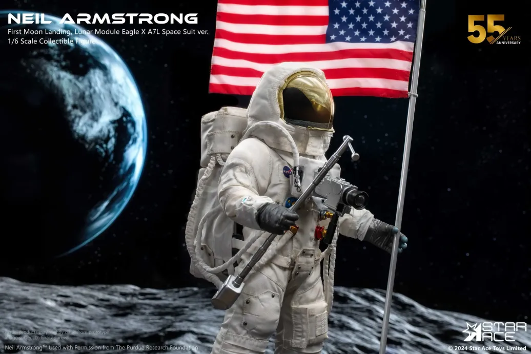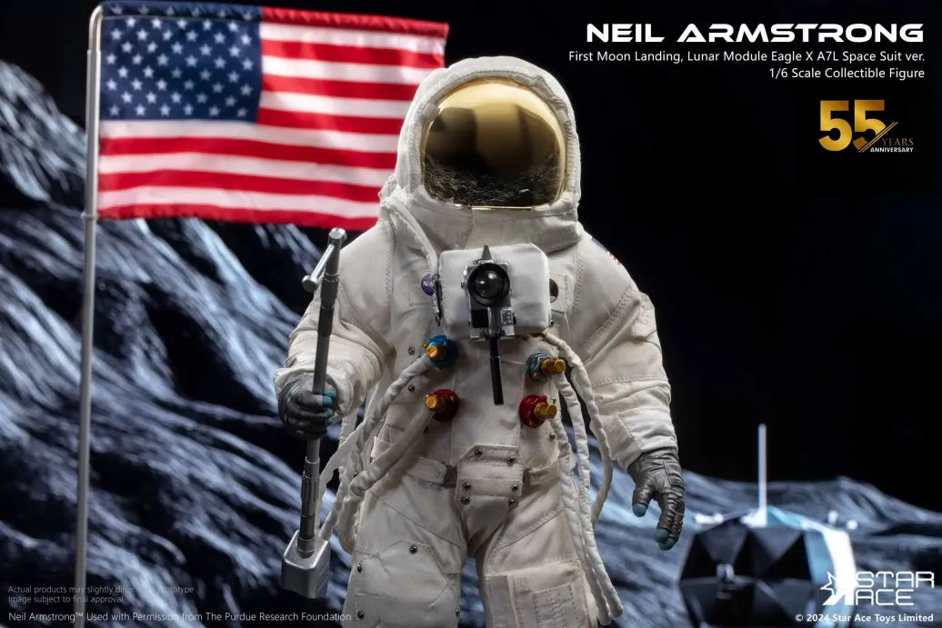 Diese großartige Actionfigur zu Neil Armstrong ist ca. 30 cm groß, handbemalt und kommt mit jeder Menge Zubehör und Austauschteilen.