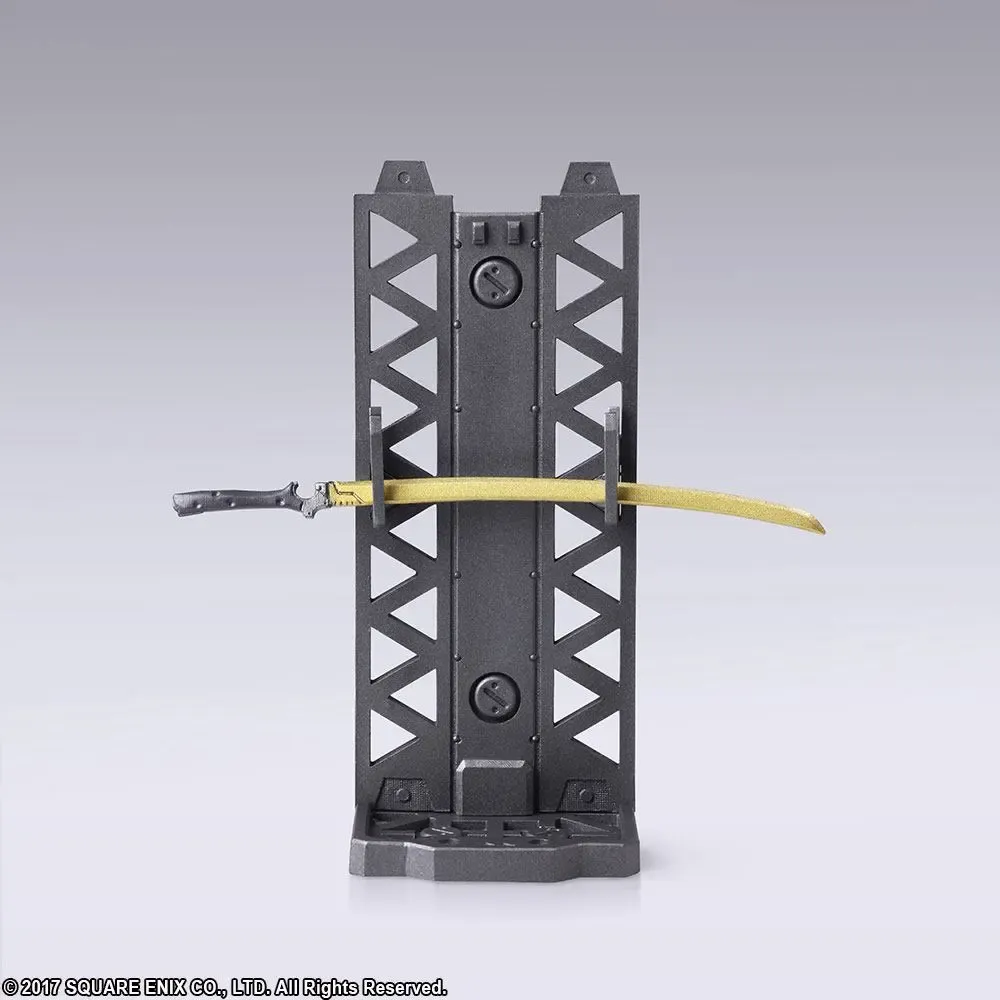 Zum Videospiel NieR Automata kommt dieser Pack mit 10 Waffen aus PVC zum Sammeln. Sie dienen außerdem als Zubehör für Actionfiguren der Bring Arts-Reihe. Jede Waffe ist ca. 7-18 cm groß und kommt inkl. Display-Ständer.