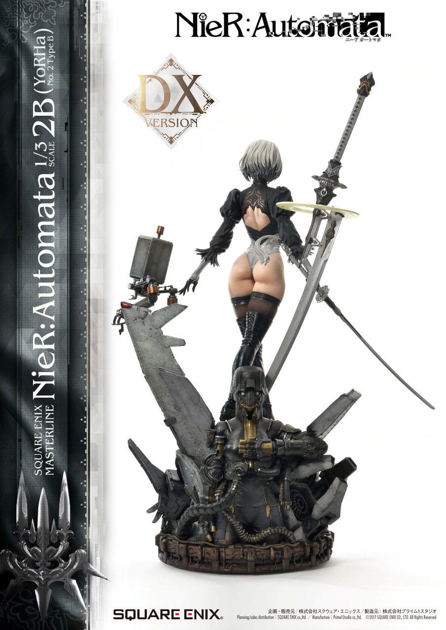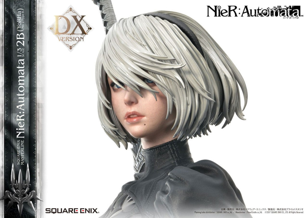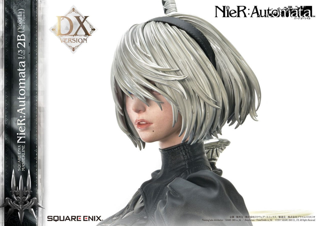 Die Form von 2Bs Gesicht und ihrer Kleidung wurden im Maßstab 1:3 nachgebildet und erwecken die kultigen Details aus dem Spiel zum Leben. Auf dem Sockel befindet sich auch die Unterstützungseinheit Pod 042 sowie viele Elemente, welche die Kämpfe der YoRHa-Einheit reflektieren, wie Teile der YoRHa-Einheit in schwerer Rüstung und der Flugeinheit, sowie das Schwert Tugendabkommen. All dies wird als ein einziges, dreidimensionales Werk präsentiert.