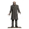 Graf Orlok wird in seiner klassischen Erscheinung dargestellt, mit einer blassen, fast geisterhaften Hautfarbe. Sein Gesicht, das von Schreck in einer der unheimlichsten Darstellungen des Vampir-Mythos verkörpert wurde, ist schmal und verzerrt, mit spitzen Zähnen, die seine dämonische Natur unterstreichen. Die Augen sind tief in den Höhlen und wirken fast leblos, was eine Atmosphäre von Unheimlichkeit erzeugt. Die langen Finger mit spitzen Nägeln, die er so charakteristisch in der Filmvorlage hält, sind ebenfalls detailreich und fügen sich perfekt in die Darstellung der Horrorfigur ein.