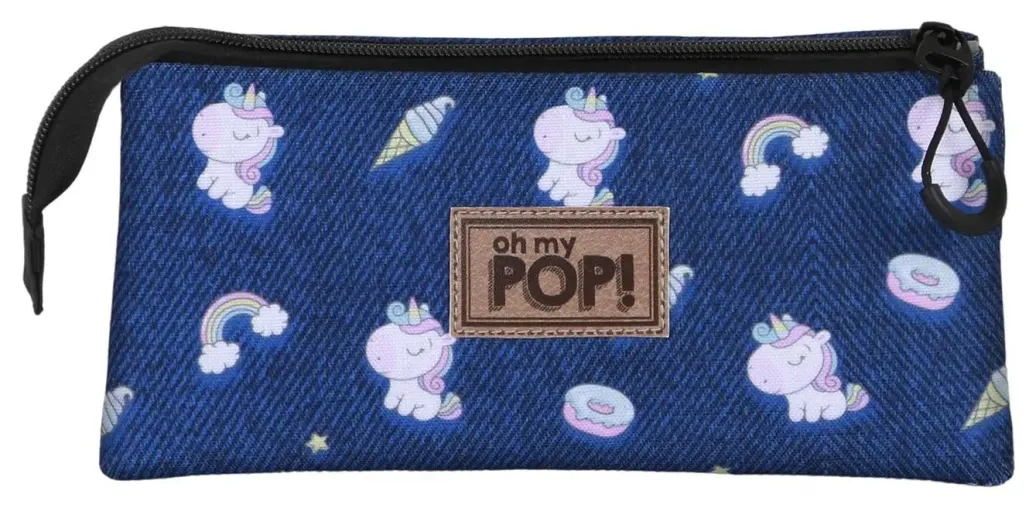 Rechteckige Federmappe mit drei Fächern für deine Sachen. Die zwei Außentaschen öffnen sich mit dem Hauptreißverschluss und die dritte mit einem eigenen.