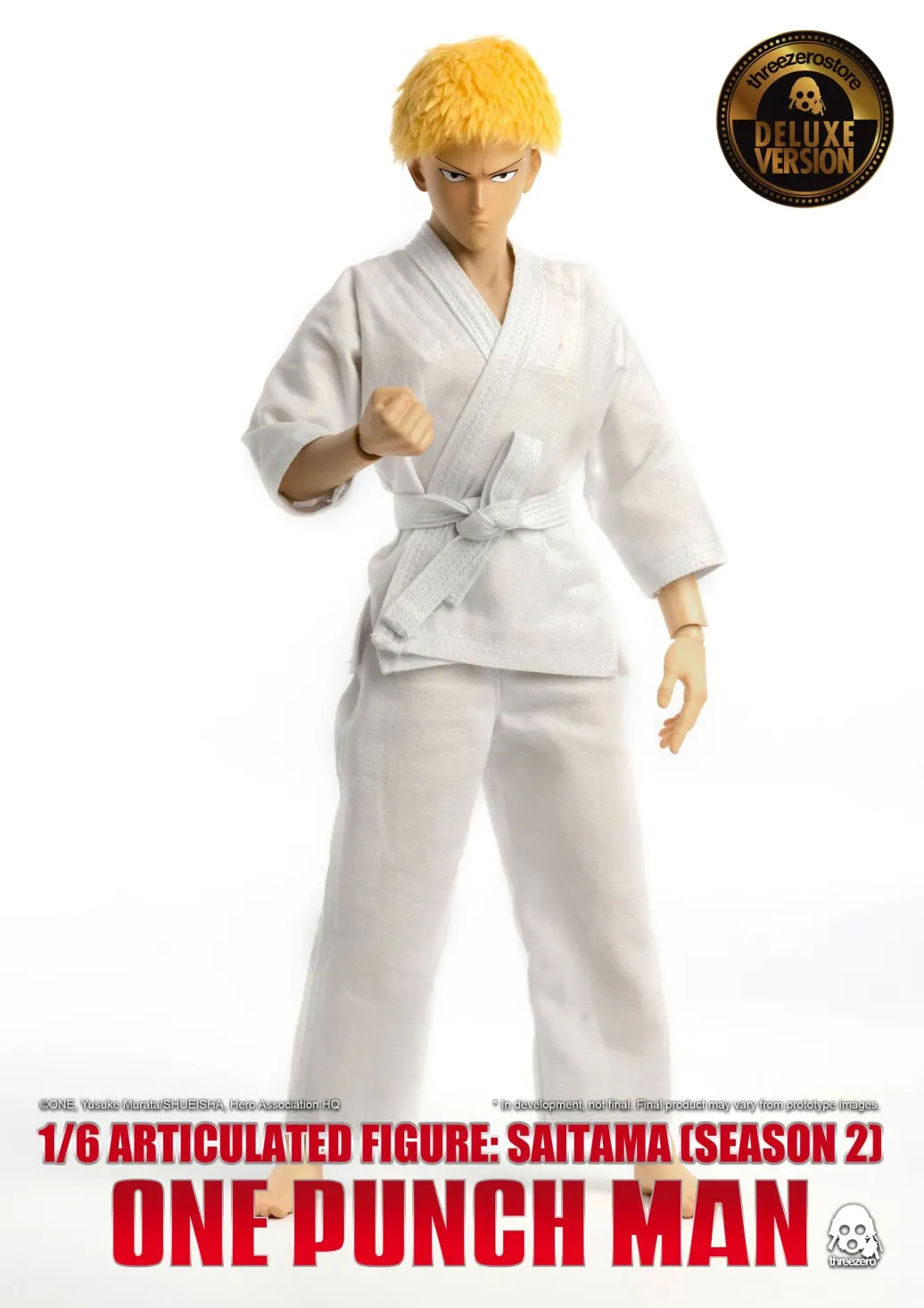 Zum Anime One Punch Man kommt diese detailreiche Saitama Actionfigur. Sie ist ca. 30 cm groß und kommt mit Zubehör in einer Fensterbox geliefert.