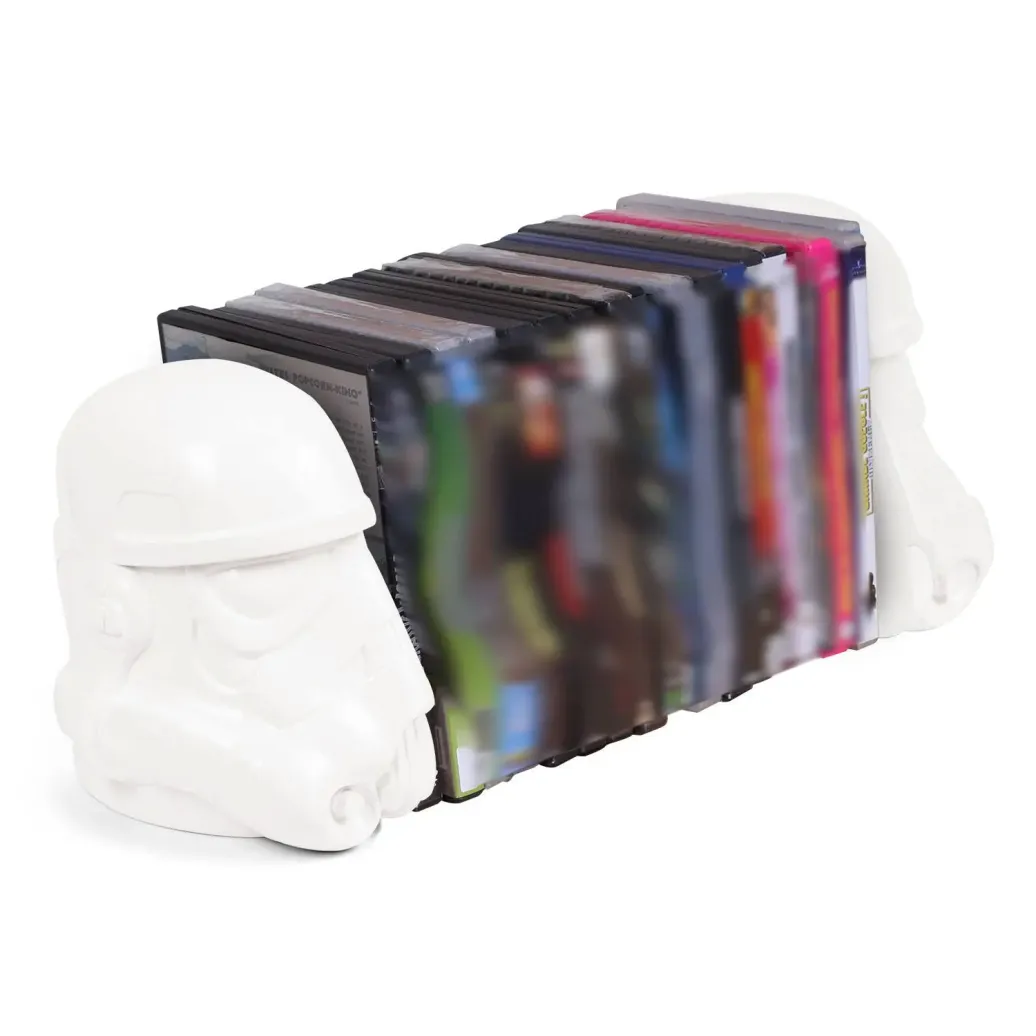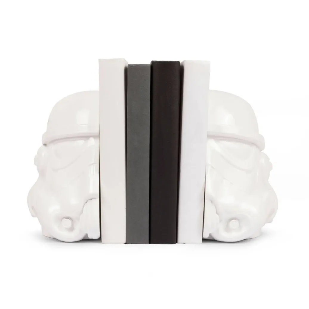 Mach mehr aus deiner Büchersammlung! Mit den kultigen Buchstützen im Design des Original Stormtrooper Helms verleihst du deinem Regal einen imperialen Look und sicherst deine Bücher vor dem Umfallen. Die Stützen sind für Bücher aller Art geeignet und machen aus deiner Leseecke einen Eyecatcher!