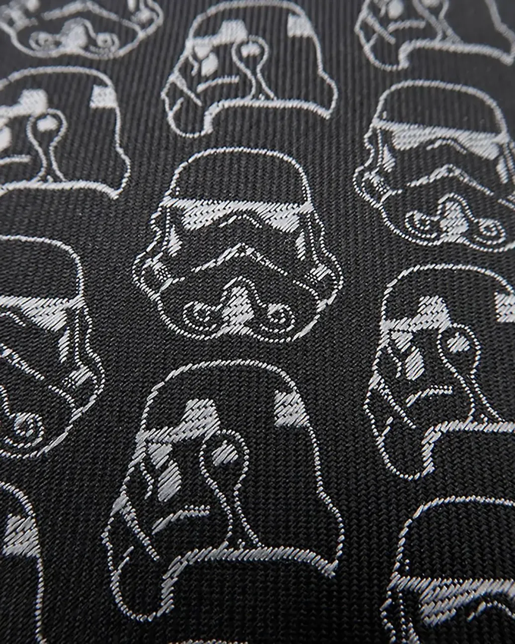 Zu offiziellen Anlässen darf die Rüstung gerne mal abgenommen und die Krawatte umgebunden werden. Diese schwarze Krawatte zeigt Original Stormtrooper Helme als dezente und elegante Outline-Grafik. Die Krawatte ist mit dem Fokus auf Nachhaltigkeit, Langlebigkeit und hohem Tragekomfort produziert worden. Die 100% aus Seide produzierte Krawatte, sorgt durch die modische Schnitt Breite von 8cm für einen eleganten und modernen Look. Ideal für alle Stormtrooper mit Mode Geschmack.