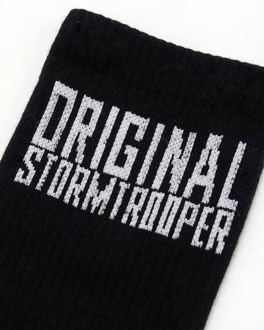Damit man im intergalaktischen Kampf keine kalten Füße bekommt, gibt es jetzt diese Original Stormtrooper Socken. Dieses 2er-Pack beinhaltet ein weißes und ein schwarzes Paar. Die Socken werden aus Biobaumwolle hergestellt, welches eine optimale Langlebigkeit und hohem Tragekomfort bietet. Das weiße Sockenpaar, zeigt oberhalb des Knöchels den Helm der Original Stormtrooper eingerahmt in schwarzen Balken auf einem weißen Hintergrund. Das schwarze Socken Paar, zeigt oberhalb des Knöchels den Schriftzug der Original Stormtrooper in Weiß und auf der Fußoberseite den Helm der Stormtrooper auf einem schwarzen Hintergrund.