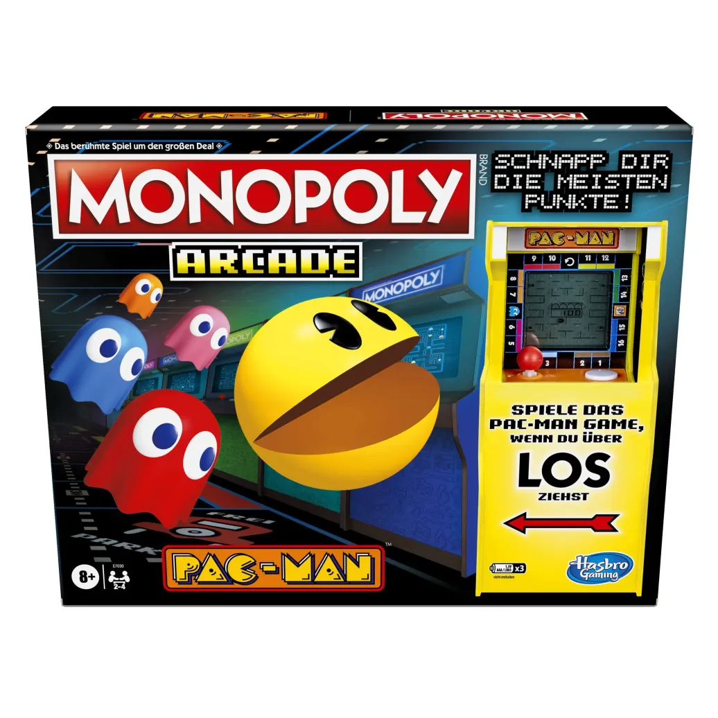 Mit diesem Monopoly Spiel mit Pac-Man-Thema können Gamer und Fans den Spielspaß des des originalen Pac-Man-Spiels wieder aufleben lassen. In diesem Spiel kann auf dem enthaltenen Bank- und Arcade-Automaten im Retrostil Pac-Man gespielt sowie eine Vielzahl weiterer Aktionen durchgeführt werden, wie Kaufen, Verkaufen oder Mitspielern Level wegzunehmen. Die Spieler ziehen um den Spielplan, um Level zu kaufen und Punkte zu verdienen und müssen sich dabei vor dem Geist in Acht nehmen. Wer über LOS zieht, darf ein Pac-Man Minispiel spielen. Die dabei verdienten Punkte werden im Bank- und Arcade-Automaten gespeichert - das Spiel kommt ganz ohne Geld aus. Wer am Ende die meisten Punkte gesammelt hat, gewinnt das Spiel!