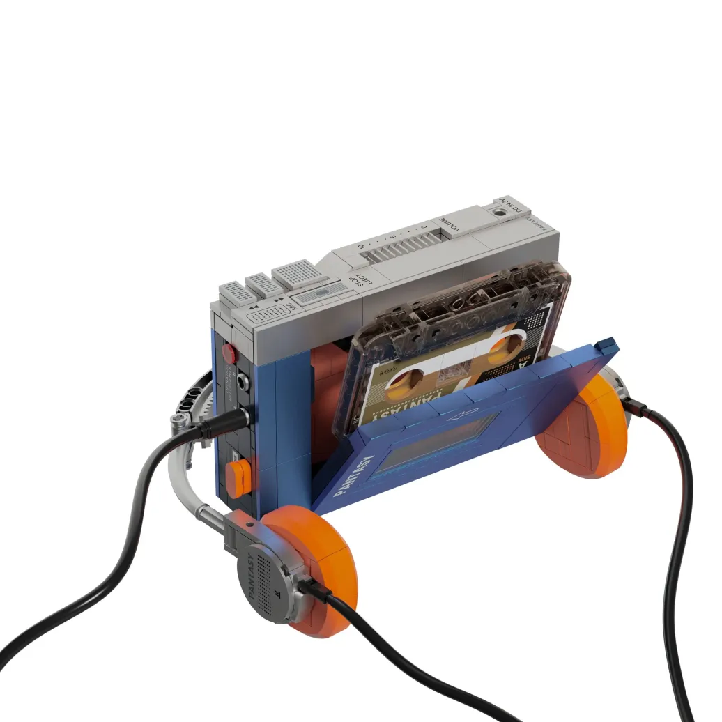 Dieses Modell ist eine liebevolle Hommage an die Geräte, die die Art und Weise, wie wir Musik hören, für immer revolutioniert haben. Beim Aufbau spüren Sie sofort die erstklassige Qualität der verwendeten Kunststoffteile, die sich nahtlos und fest zusammenfügen lassen. Besonders hervorzuheben sind die glänzenden Metallic-Steine in Blau und Silber, die dem fertigen Modell ein ungemein realistisches Aussehen verleihen. Zudem wurde bei diesem Bauset gänzlich auf Aufkleber verzichtet – jedes noch so kleine Detail, wie die Beschriftung der Tasten oder die Kassetten-Aufdrucke, ist direkt auf den Baustein gedruckt.