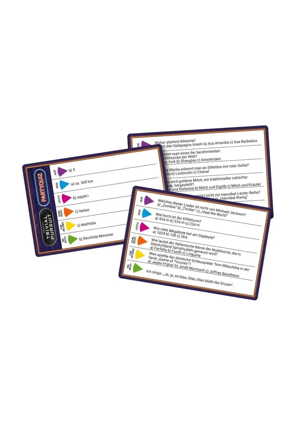 Trivial Pursuit ist der Star unter den Wissensspielen, der seit mehreren Generationen Jung und Alt mit seinen faszinierenden Fragen an das Spielbrett zieht. Hier kann jeder Quizliebhaber sein Wissen in den unterschiedlichsten Themengebieten unter Beweis stellen. Den Klassiker gibt es nun auch als verrücktes Partyquiz in der praktischen Reise-Edition. Dieses Spiel macht aus jeder öden Feier eine Mega-Party. Natürlich warten bei dieser Edition ganz neue Herausforderungen. Also: Worauf noch warten? Los geht der Partyquiz-Spaß!