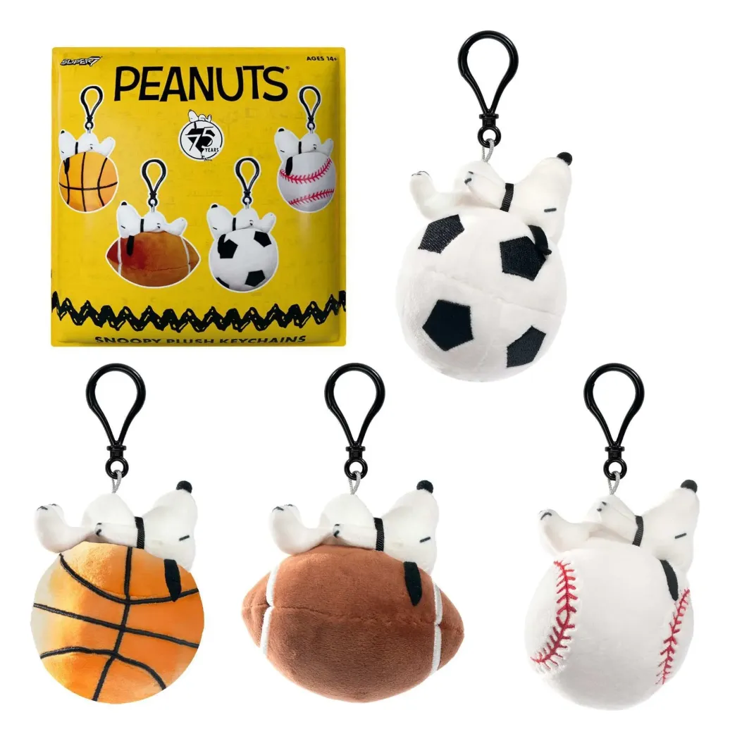 Bei diesem Produkt handelt es sich um eine „Blind Bag Flat“-Verpackung aus der „Peanuts Super Duper Plush Keychain“-Serie, Serie 01A. Sie enthält mehrere Überraschungs-Plüsch-Schlüsselanhänger mit Figuren aus der „Peanuts“-Lizenz.