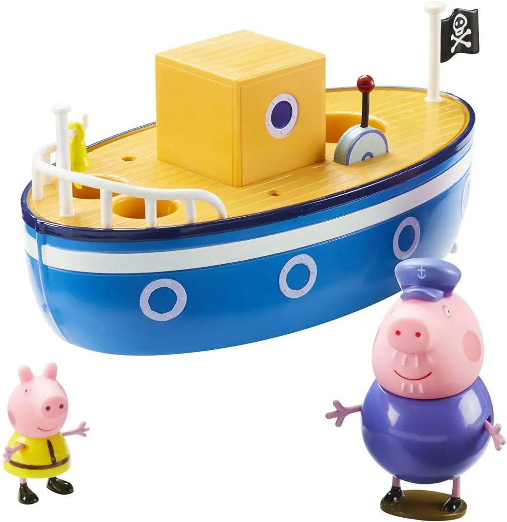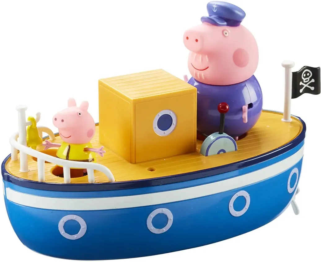 Kleine Peppa-Fans fahren gemeinsam mit Peppa und Opa über das Meer - mit dem Badeschiff. Das Boot schwimmt in der Badewanne und bringt jede Menge Spaß mit den Figuren von Peppa Wutz und Opa Wutz.