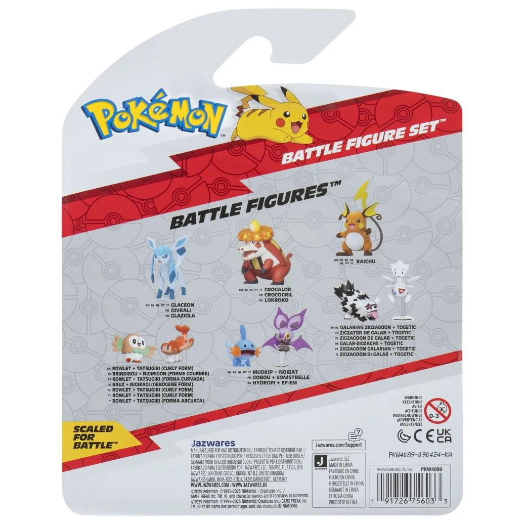 Aus der Reihe "Battle Figure Pack" kommt dieser Pack mit 3 detailreichen Pokémon Minifiguren. Die Figuren sind ca. 5 cm groß und kommen in einer Blisterverpackung.
