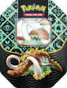 Die Tin-Box Riesenzahn-ex Karmesin & Purpur - Paldeas Schicksale des Pokémon-Sammelkartenspiels enthält: